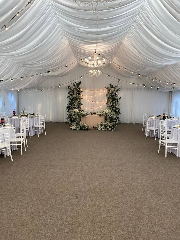 С июня по сентябрь «Тверь Парк Отель» предоставляет уникальную возможность для проведения мероприятий на свежем воздухе. Просторный шатер размером 150 м², рассчитанный на сто гостей, станет идеальным местом для реализации ваших идей и проектов.