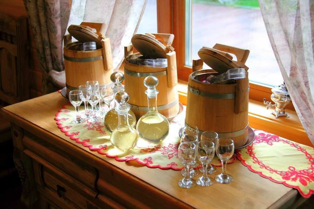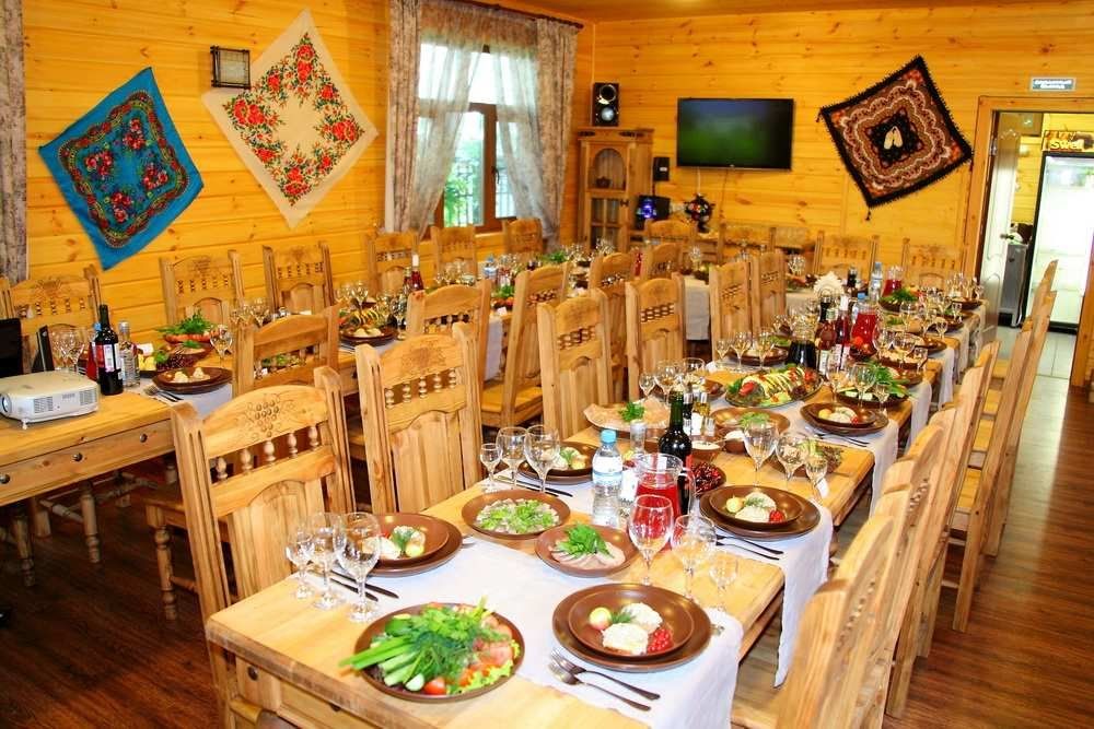 - заказ по меню от 2000 ₽ с человека + барная продукция на сумму не менее 10% от меню, плата за аренду «Русской избы» не взимается;