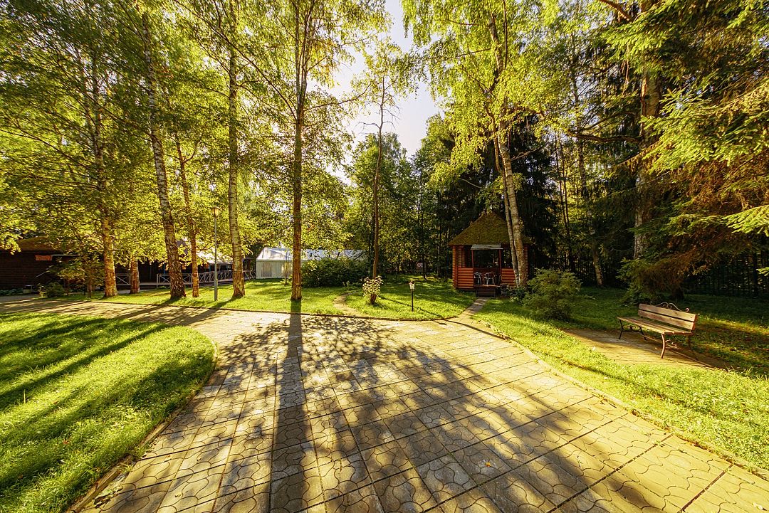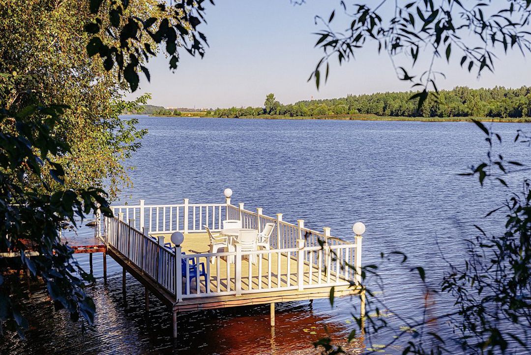Территория ухоженная. Несколько площадок и беседок для аренды. Есть 2 спуска к реке, один из которых заканчивается небольшим причалом.