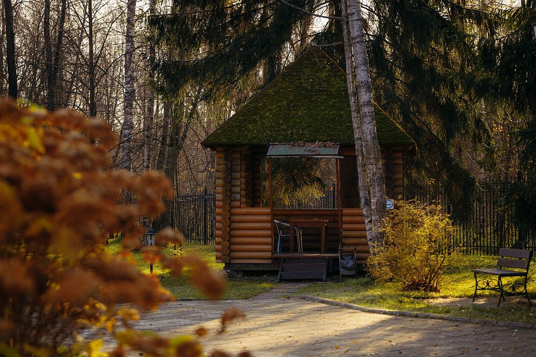 На территории уютно расположилась малая беседка, способная вместить до восьми человек. Это идеальное место для уединенного отдыха с близкими, где можно насладиться свежим воздухом и атмосферой природы. Часто ее выбирают в сочетании с мангальной площадкой, создавая идеальные условия для веселых встреч и праздников.