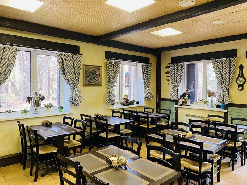 Небольшое уютное кафе расположено на территории базы отдыха с видом на озеро Селигер.