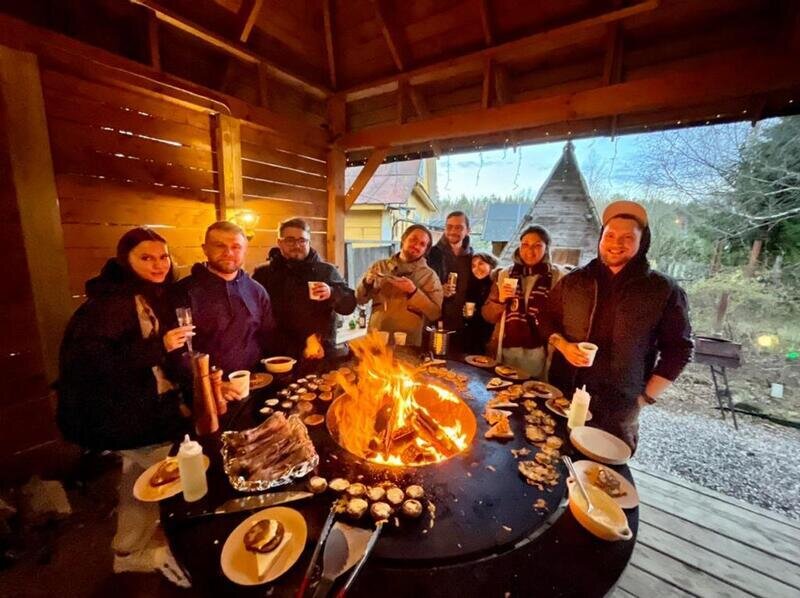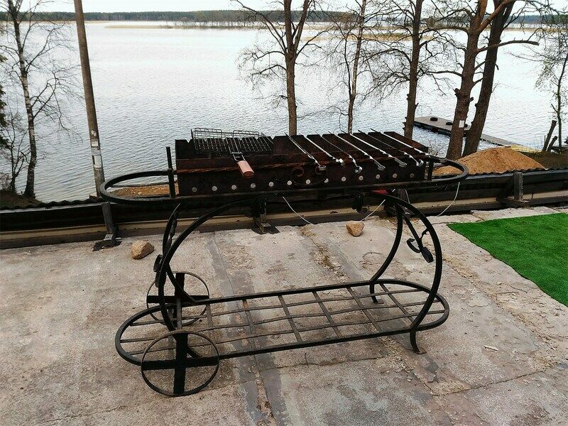 Гриль-бар расположен в отдельно стоящей открытой беседки с видом на озеро Селигер, работает в формате заказного банкета.
