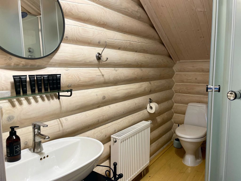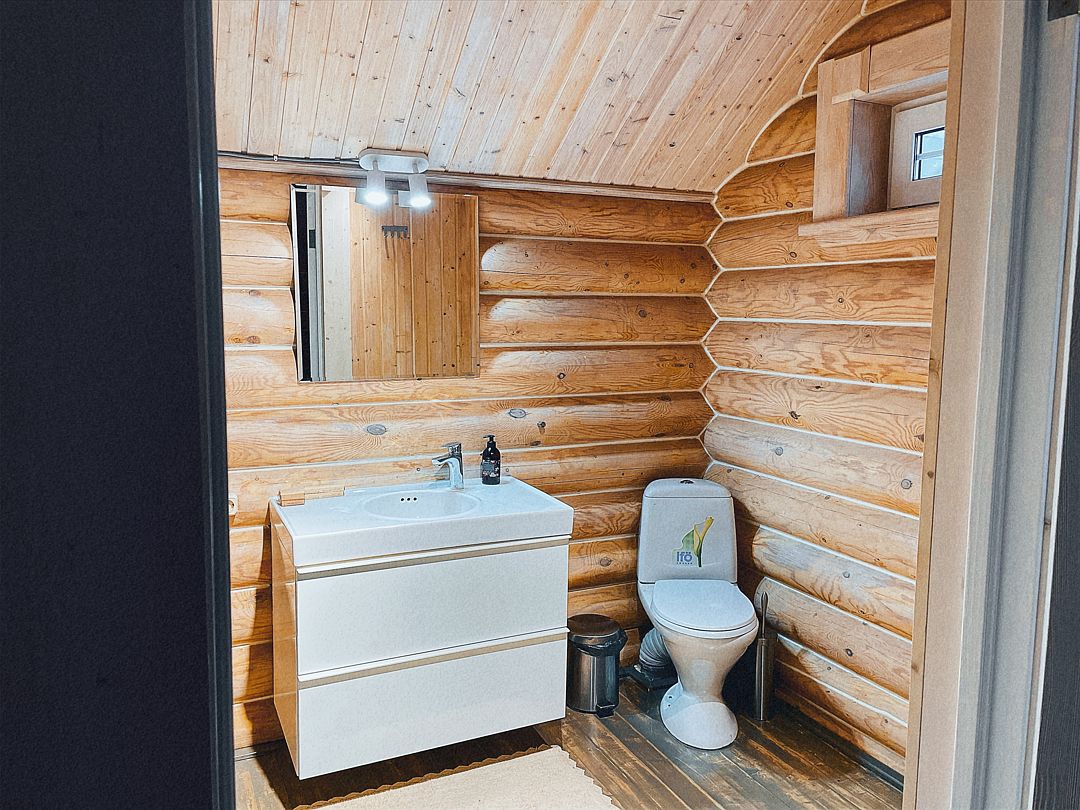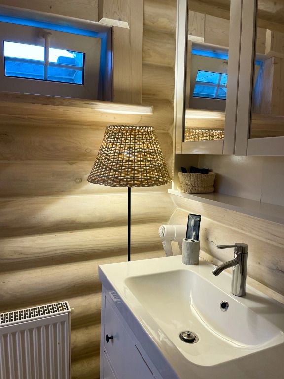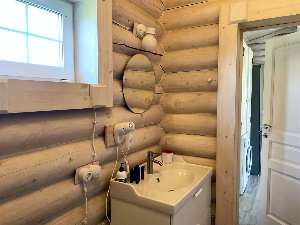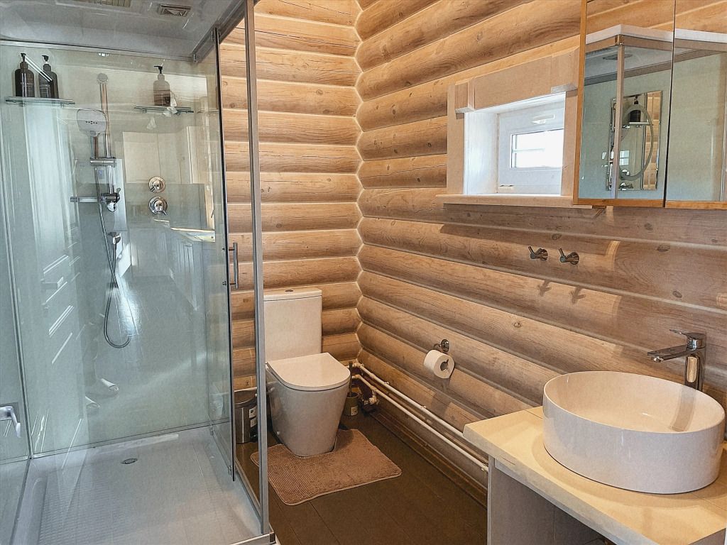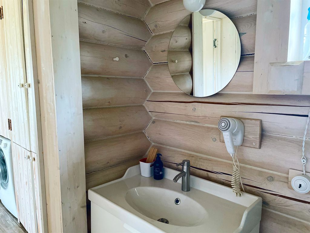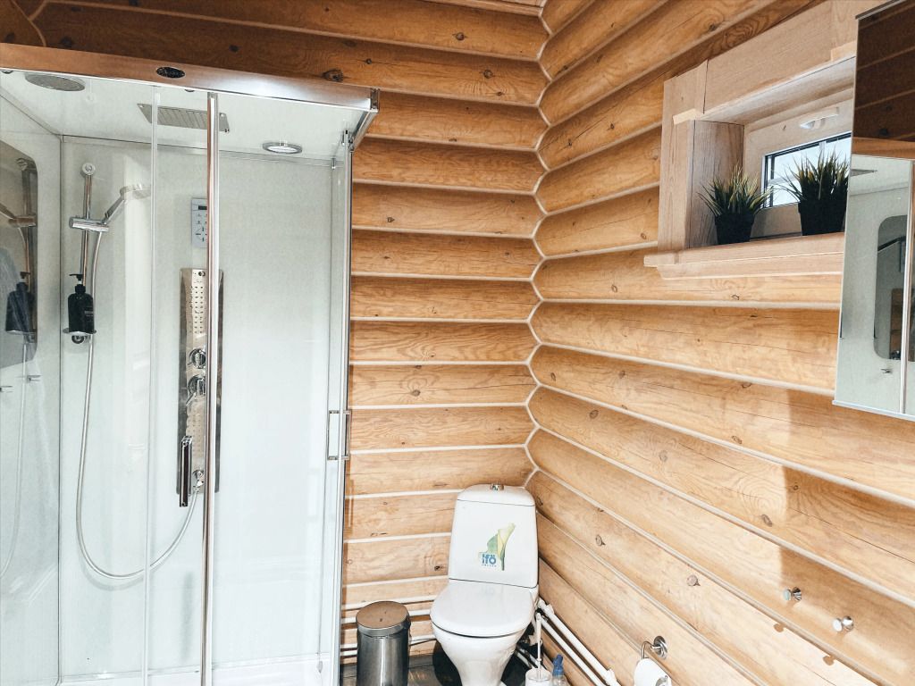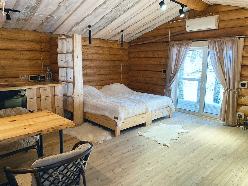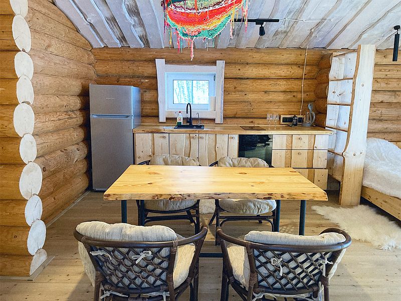 Дом с печкой-буржуйкой оснащен всеми необходимыми удобствами, включая два основных спальных места, телевизор с кабельными каналами, Wi-Fi, холодильник, посудомойка, духовка, чайник и кондиционер. В собственной ванной комнате установлена душевая кабина.