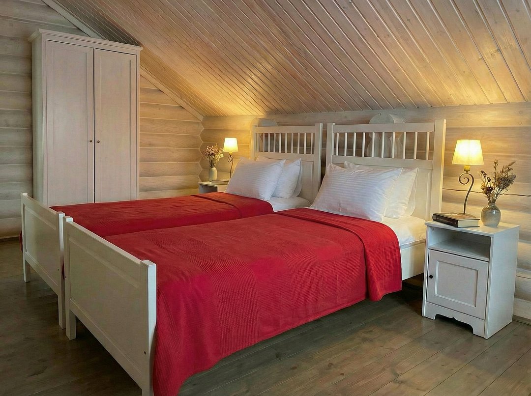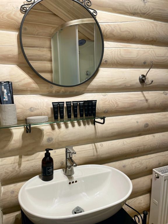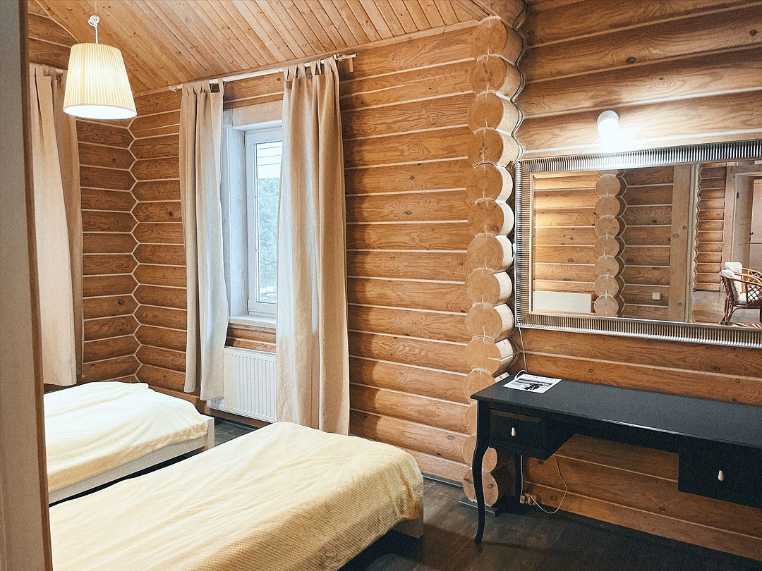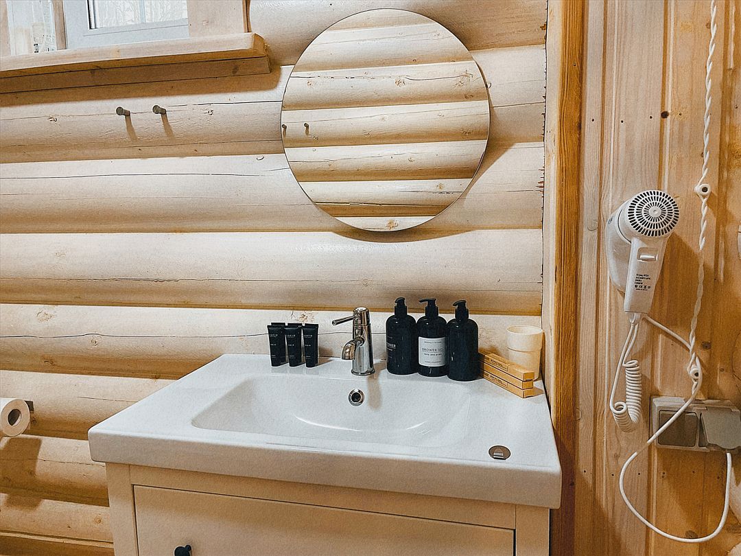 На территории доступна аренда «Таёжной бани» (до 6 человек) и «Большой бани» (до 15 человек).