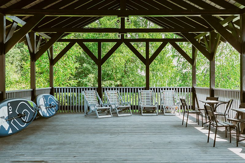 Кафе на берегу водохранилища с панорамными окнами и большой верандой. Блюда европейской кухни из фермерских продуктов, работает бар.