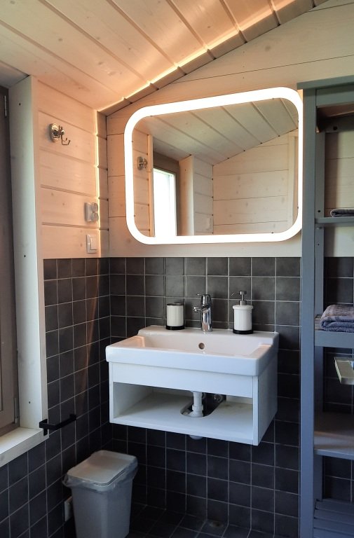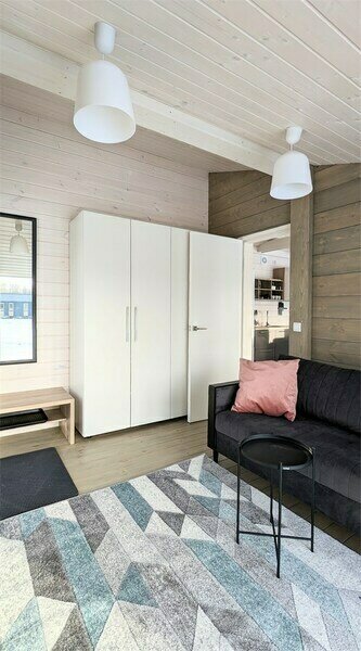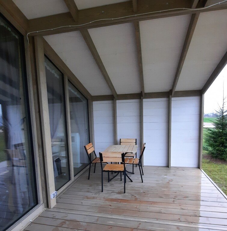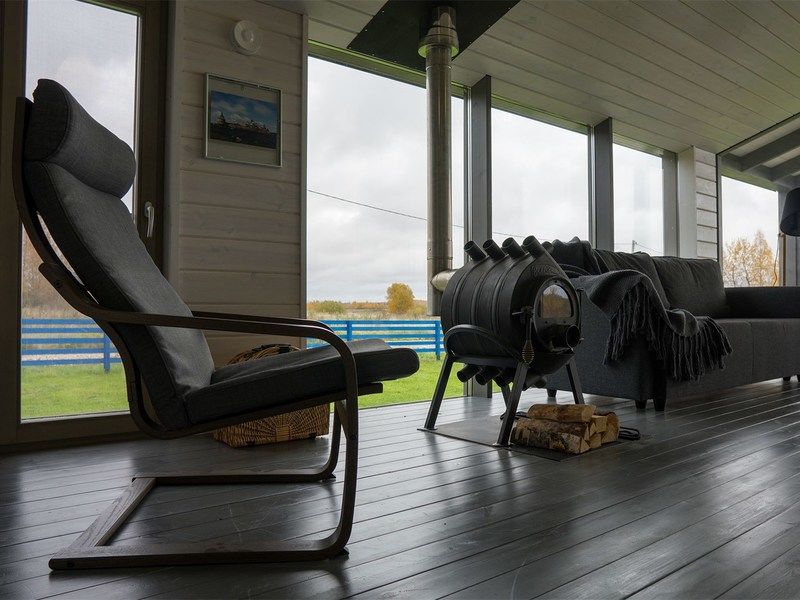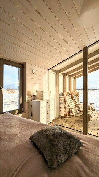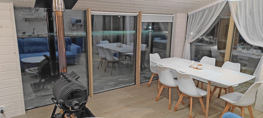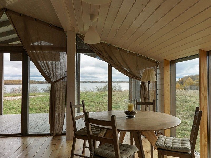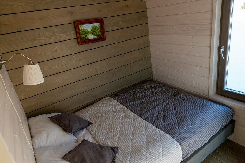 Дом площадью на второй линии от берега в 150 м от воды. Панорамное остекление и веранда, откуда открывается отличный вид на водохранилище. Удобная гостиная с камином, совмещенная с кухней. В доме одна спальня на для двух гостей + 2 места для дополнительного размещения в гостиной. Возможно еще одно дополнительное место.