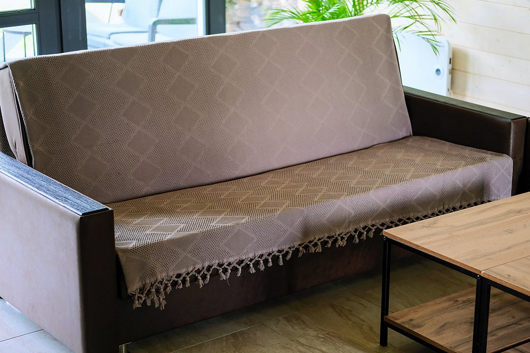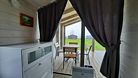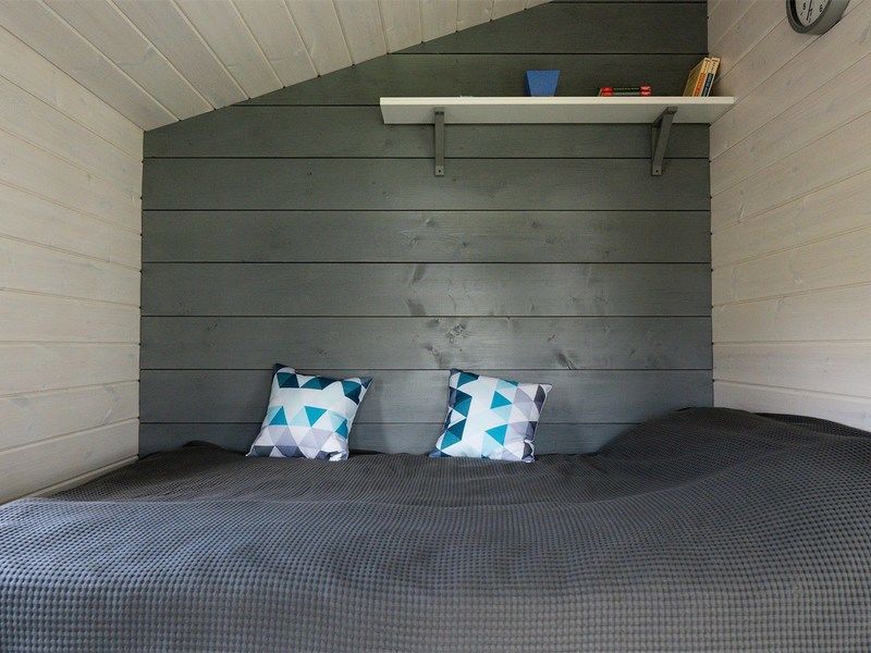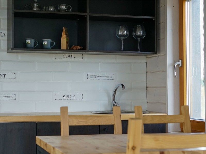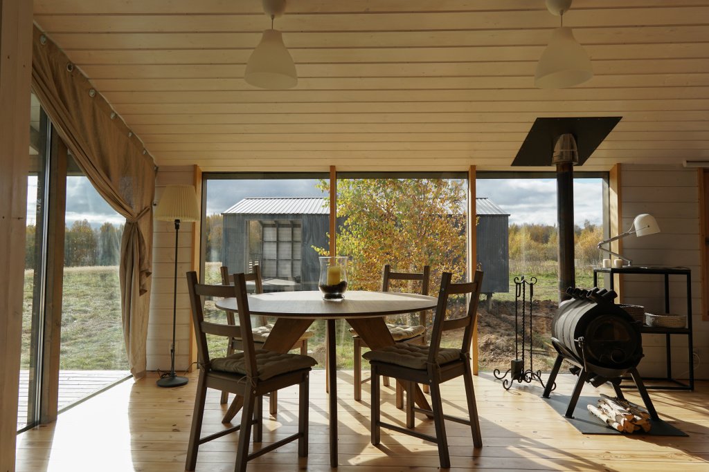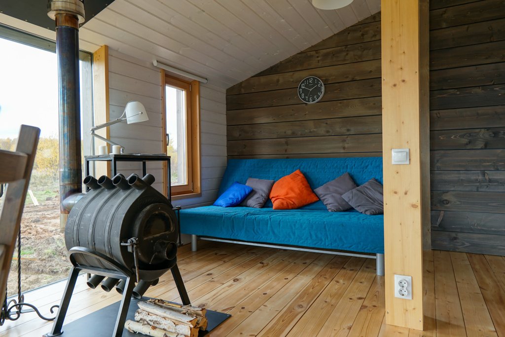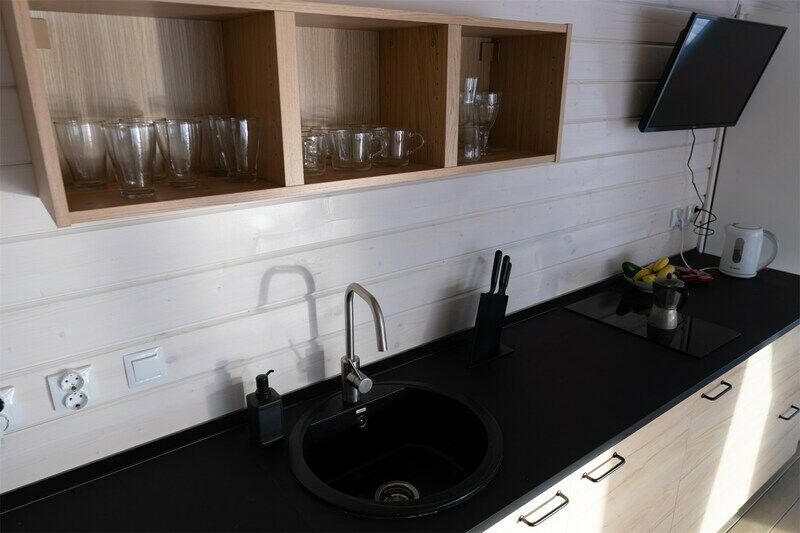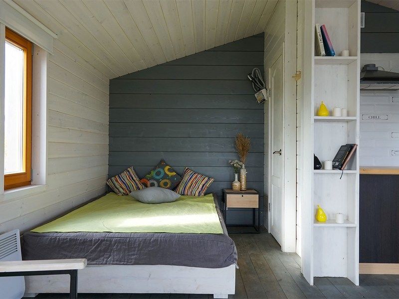 В доме одна комната, совмещенная с кухней и гостинной. Отлично подойдет для уединенного отдыха вдвоем.