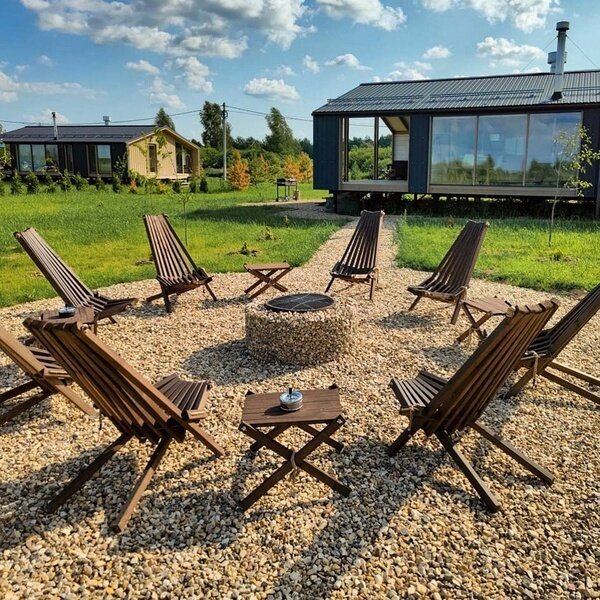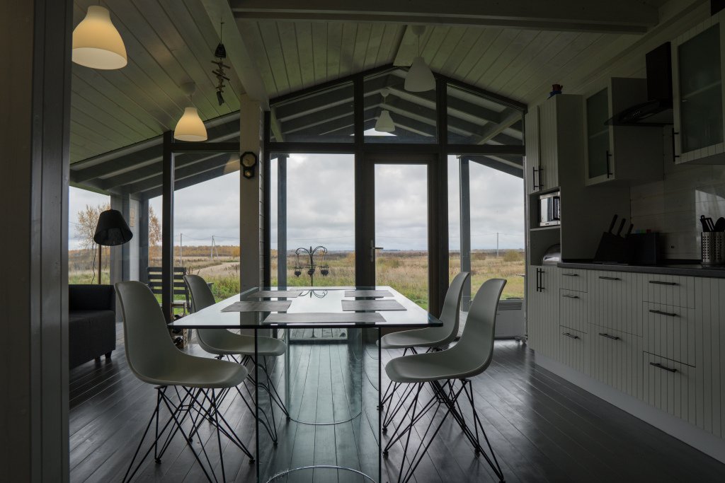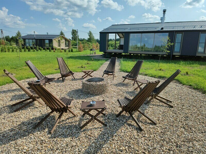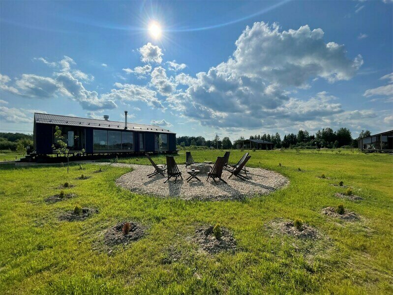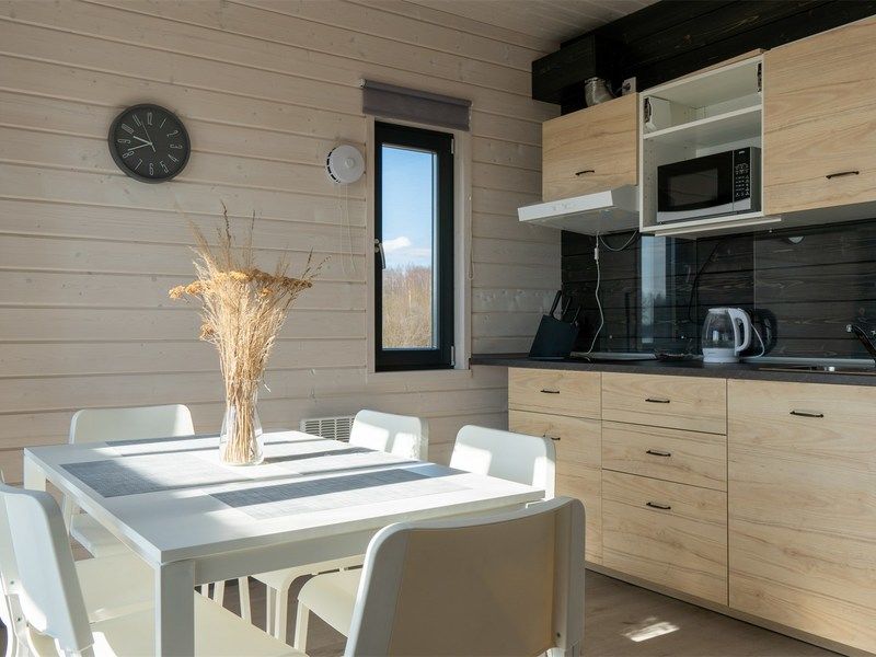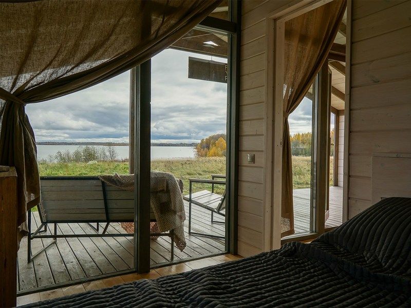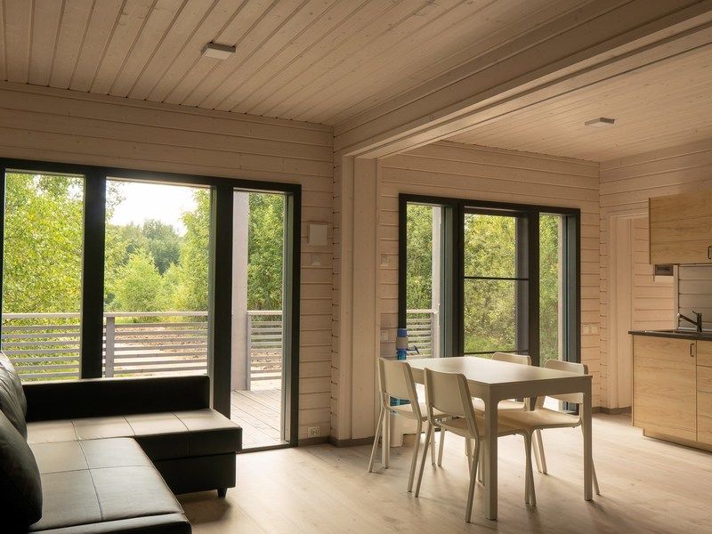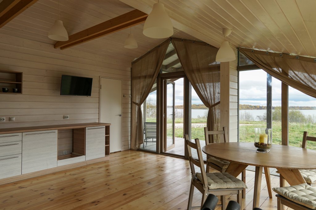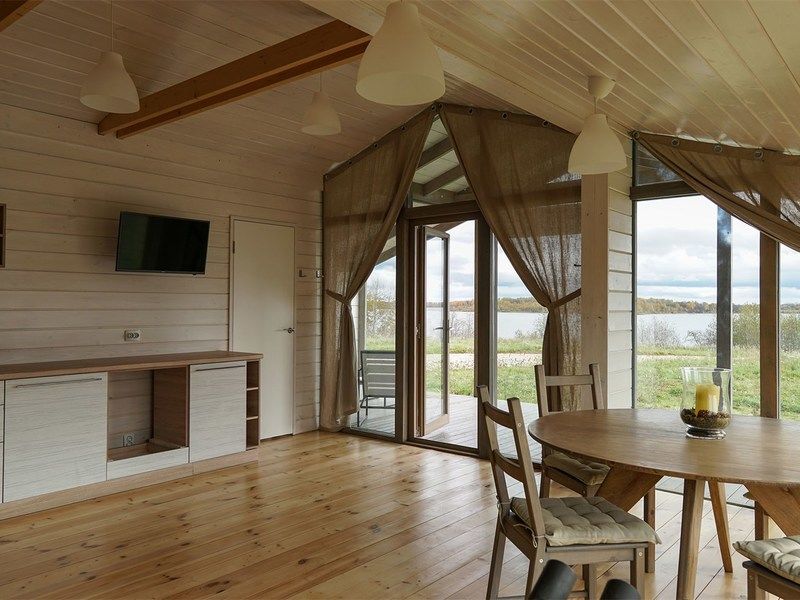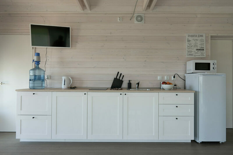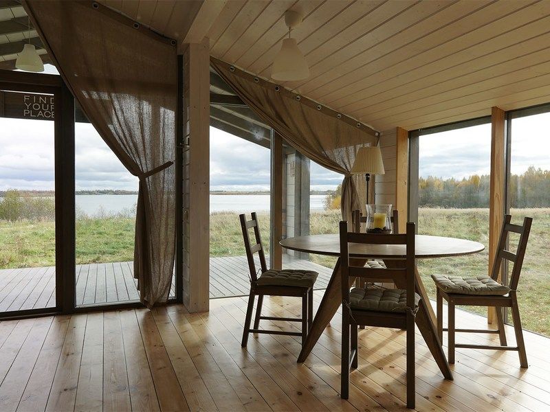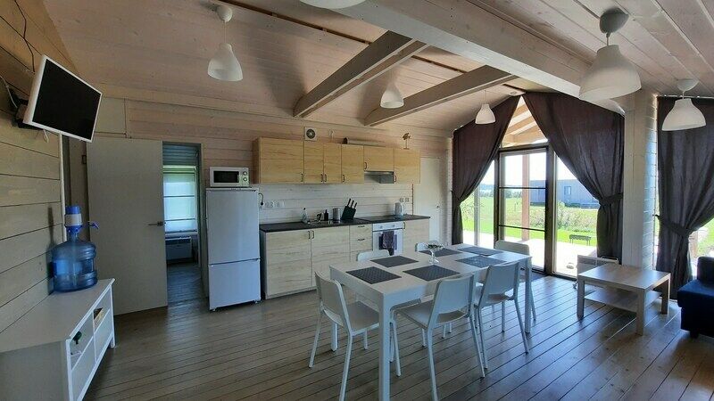 Отдыхающим предлагается размещение в уютных, комфортабельных деревянных домах с панорамным остеклением, оснащенных кухней и террасой, рядом с пляжем. На территории комплекса работает кафе с европейской кухней, где можно расслабиться и насладиться вкусной едой.