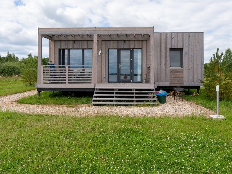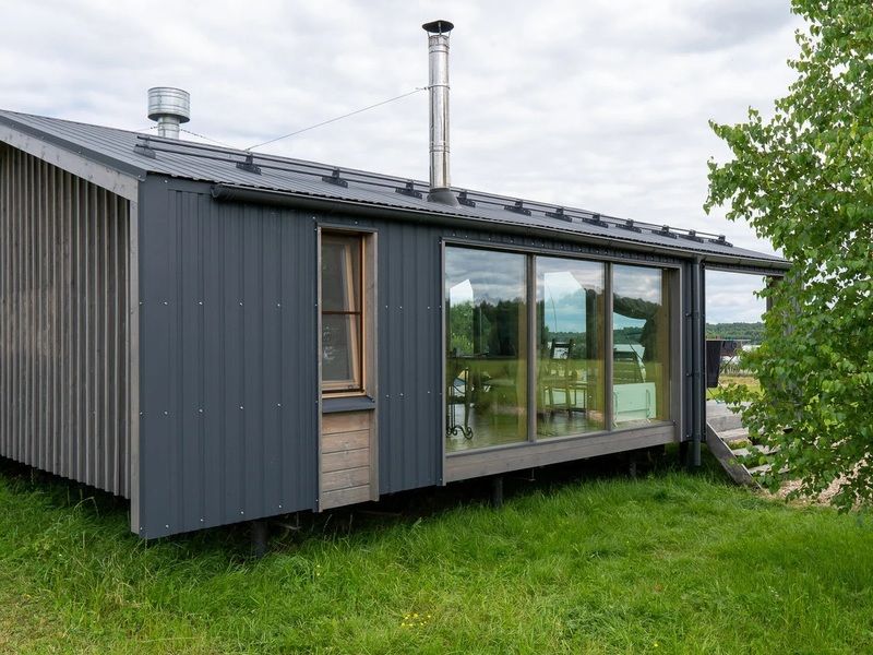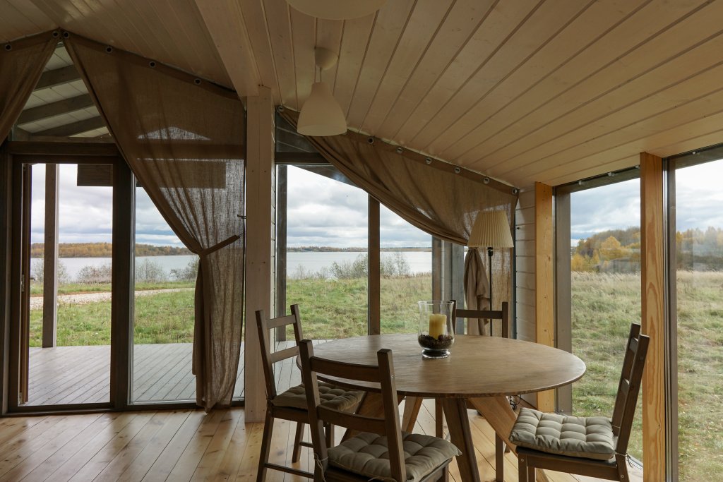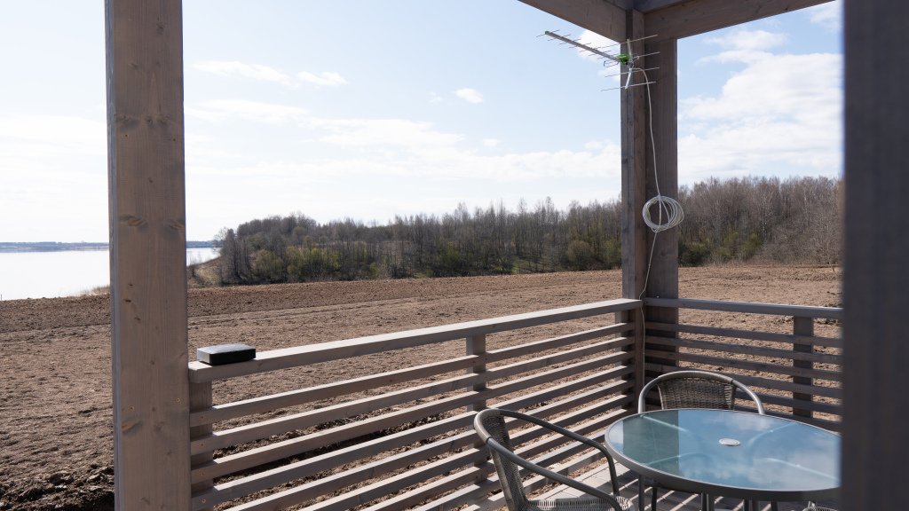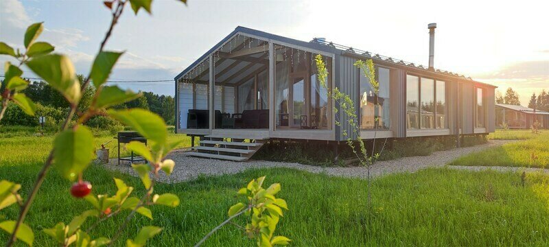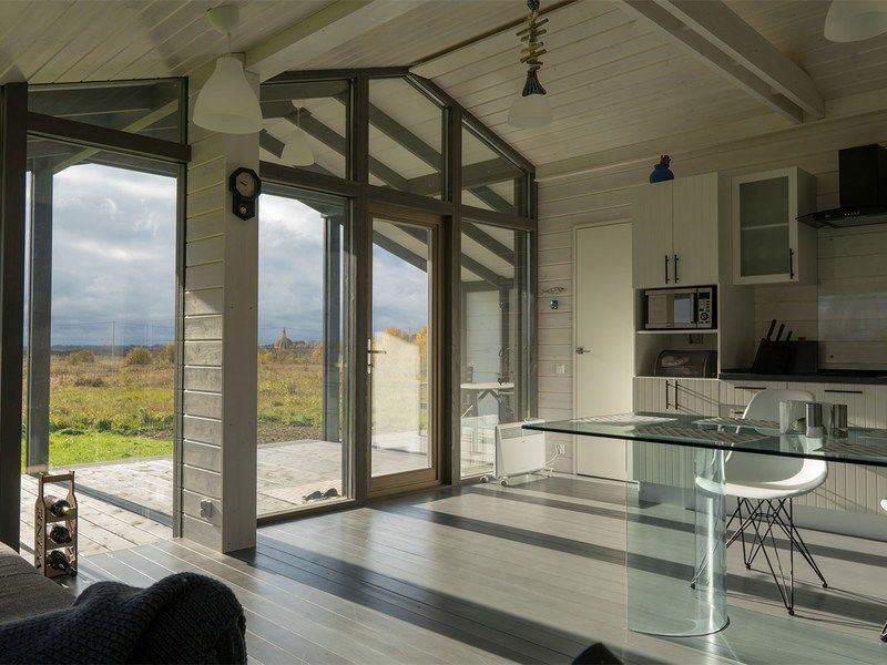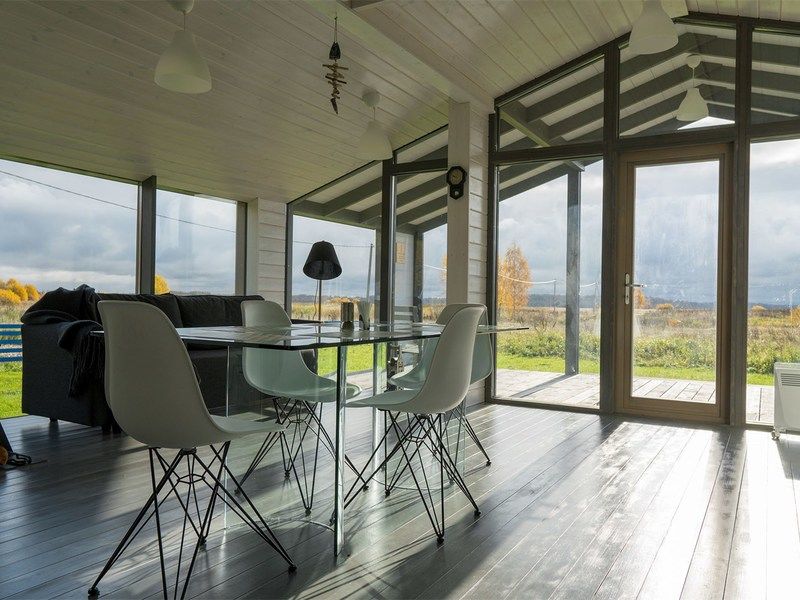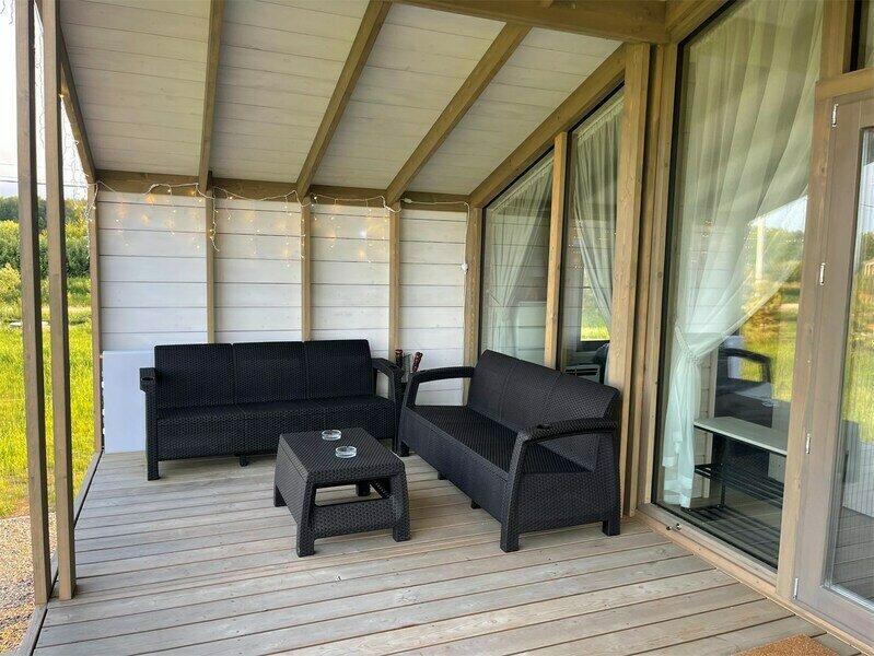 Уютный дом-студия, площадью 26 м². Панорамное остекление и веранда, откуда открывается отличный вид на водохранилище.