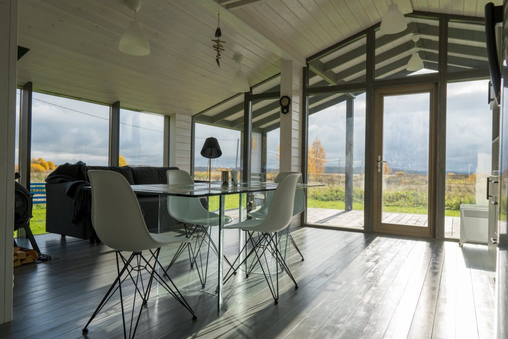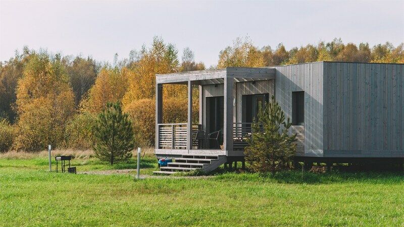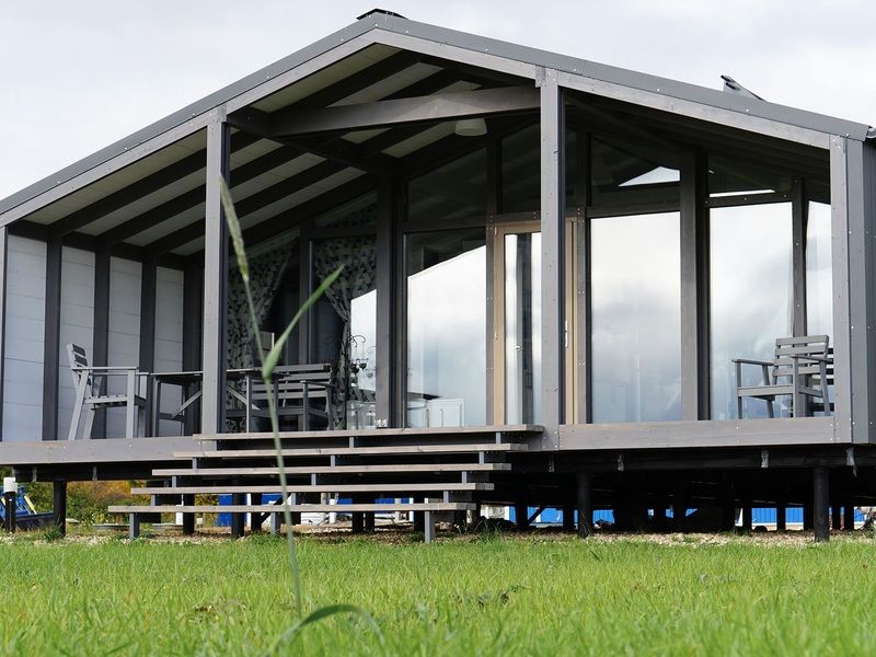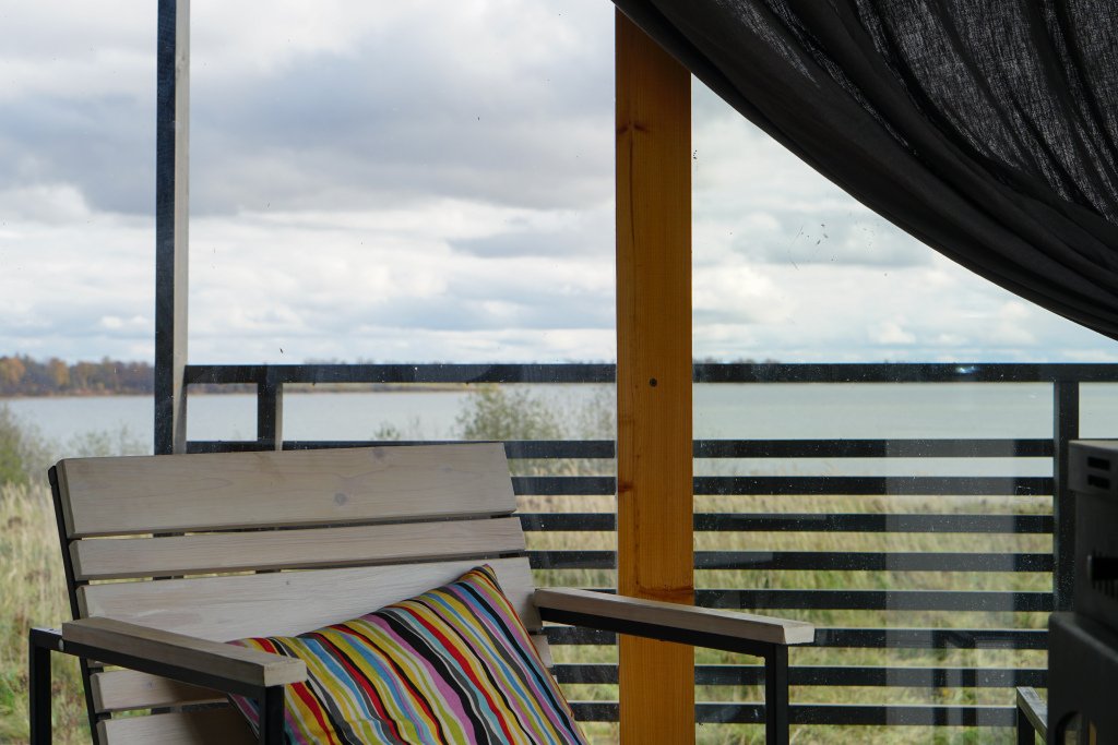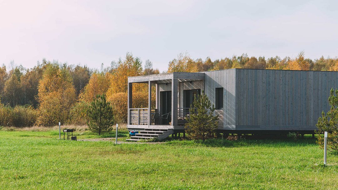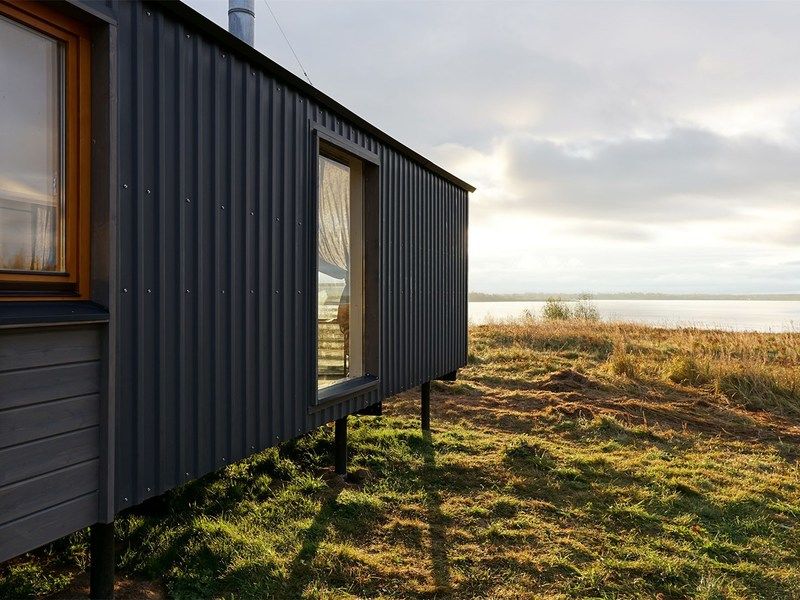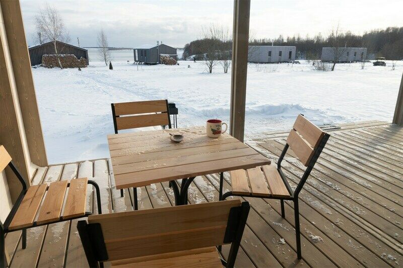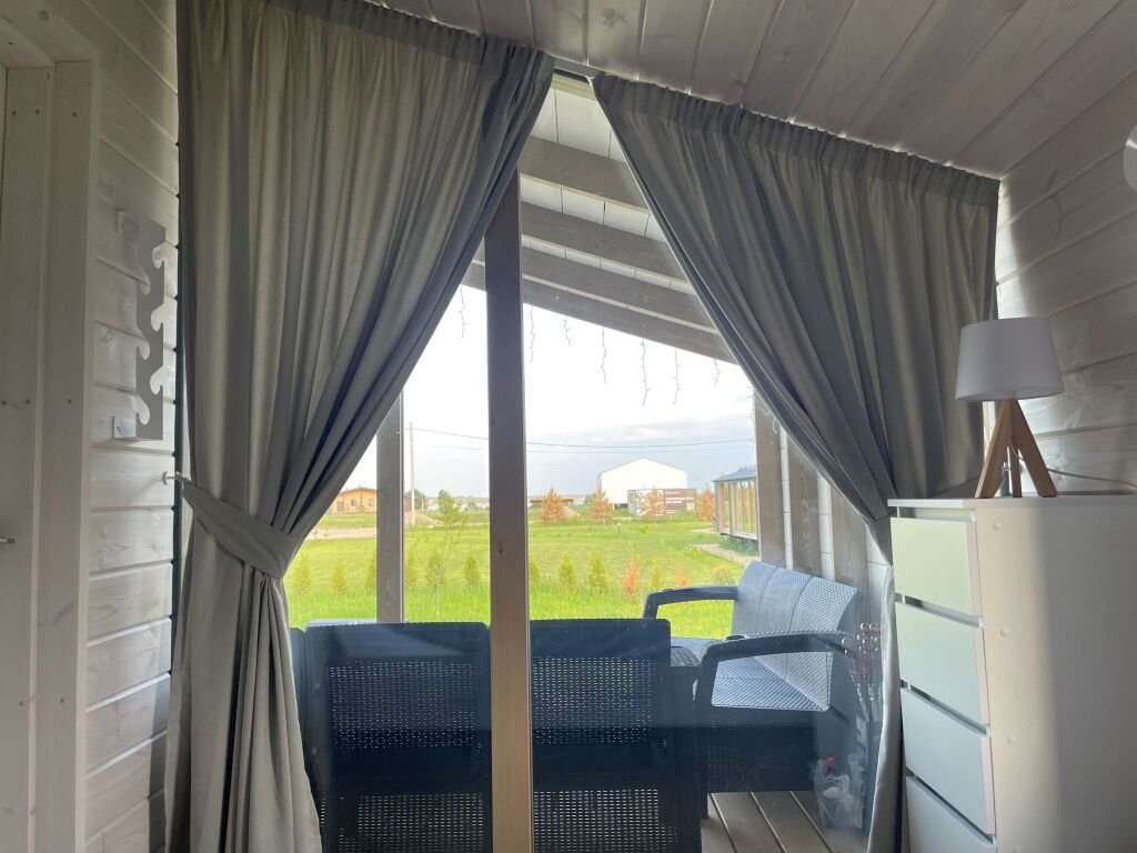 Уютный дом-студия, площадью 26 м². Панорамное остекление и веранда, откуда открывается отличный вид на водохранилище.