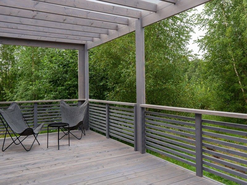 Дом площадью 43 м². Панорамное остекление и веранда, откуда открывается отличный вид на водохранилище.