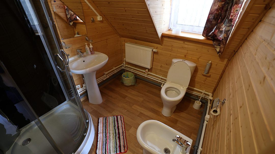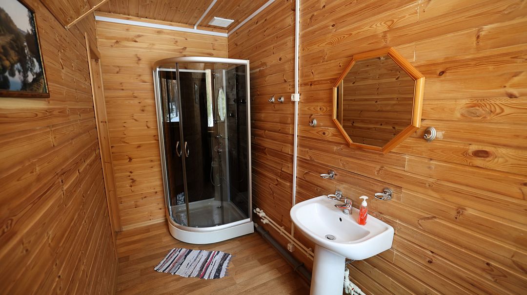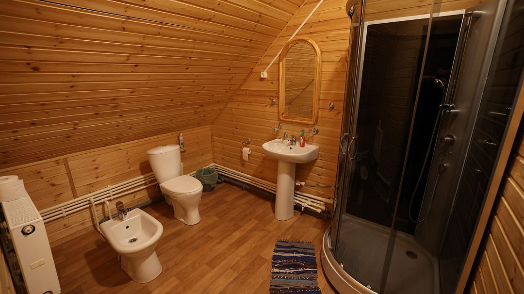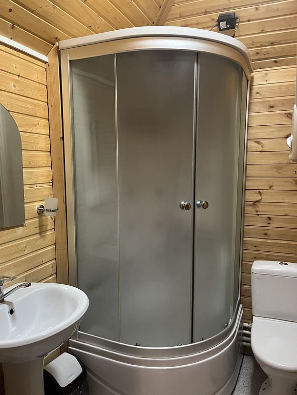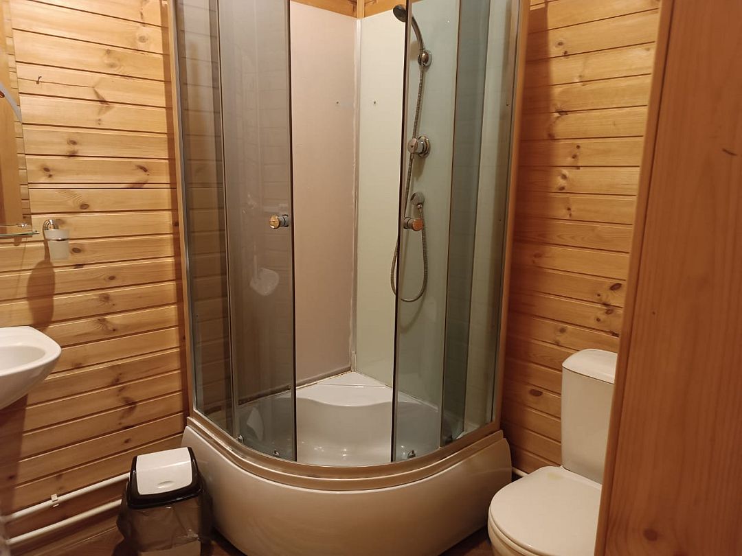 Во всех номерах есть ванная комната с раковиной, душевой кабиной и туалетом. По два полотенца на каждого гостя.