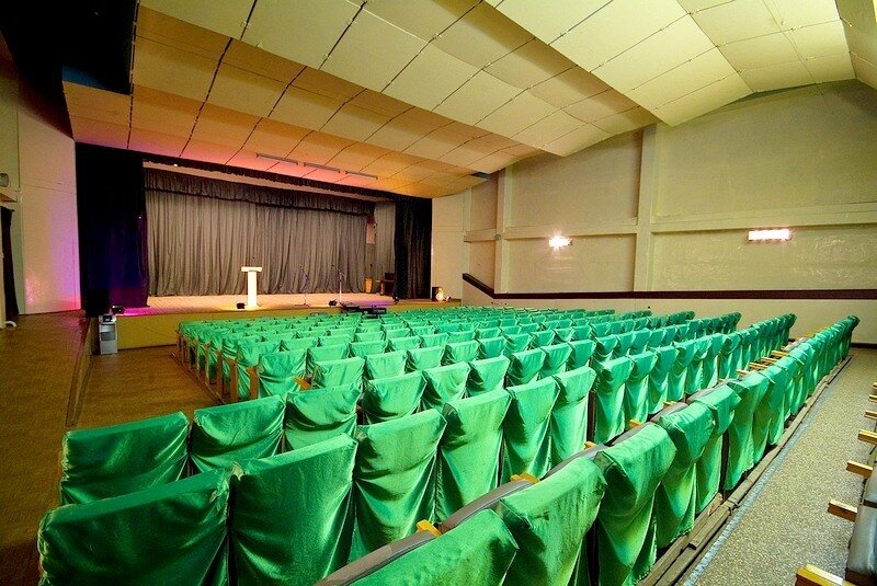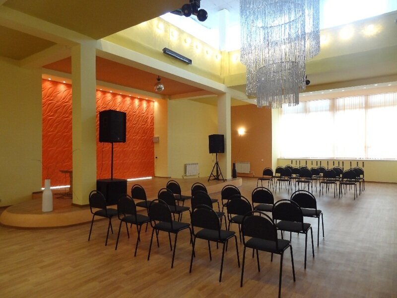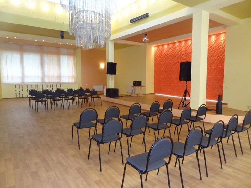 Читать полностьюВместимость — до 250 человек. Оснащен мультимедийным проектором, экраном, звуковым оборудованием мощностью 1 квт, микрофонами, модулем докладчика, микшерным пультом с возможностью подключения дополнительных звуковых носителей и обработкой голоса, досками докладчика (+ ватман, маркеры и т.д.). Проектор коммутируется как с компьютером, так и с DVD носителем. Помещение конференц зала позволяет проводить в нём также различные развлекательные программы и концерты, для этого предусмотрен профессиональный игровой свет и другое необходимое оборудование. В прилегающих холлах гостям предлагается организация кофе-брейков. Также можно использовать холлы как дополнительные переговорные комнаты.