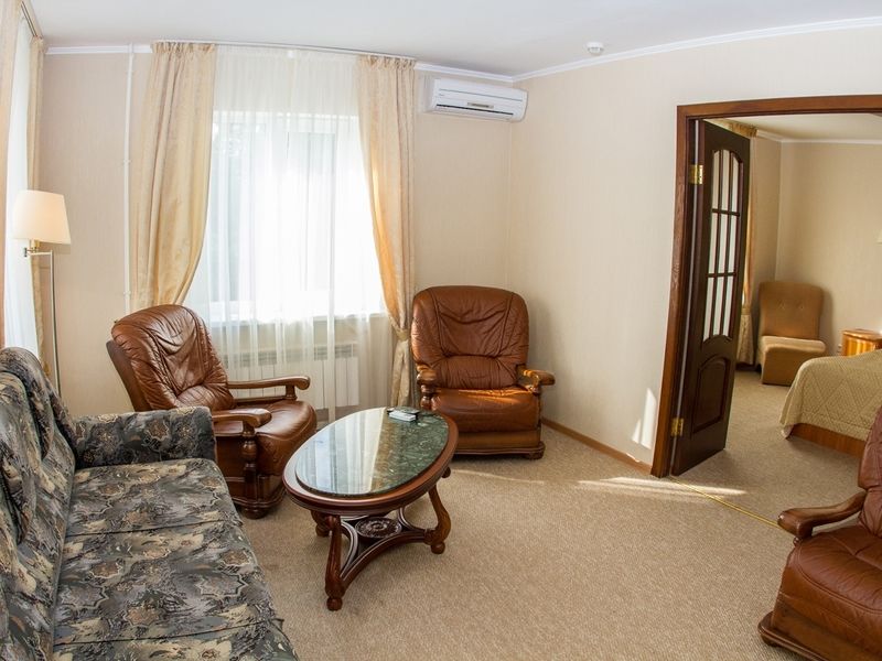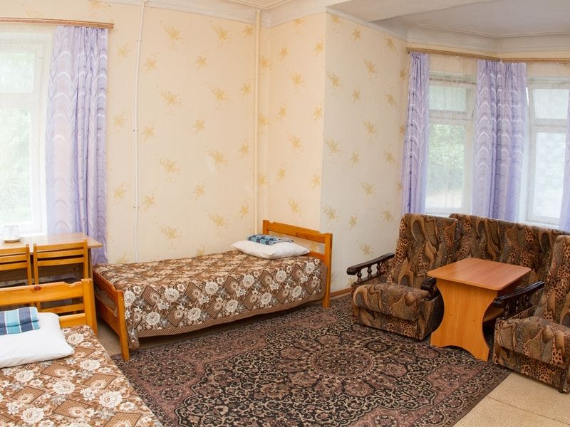 В пансионате гостям предлагаются благоустроенные корпуса в которых: двухместные номера с лоджиями, трёхместные, улучшенные двухместные, евростандарты, прекрасно оформленные полулюксы и роскошные люксы. Везде удобная мебель, телевизор, холодильник, в люксах, полулюксах и евростандартах - кондиционеры, во всех номерах много воздуха и света. Также, в пансионате есть летняя сеть: двухместные номера в домиках и в летнем корпусе.