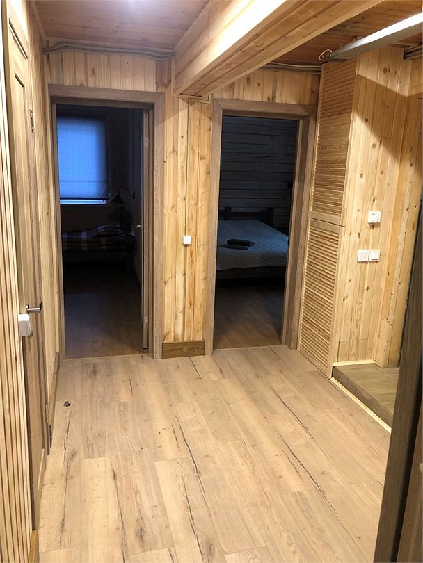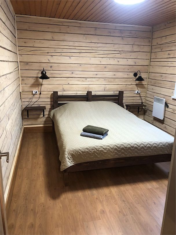 Две спальни по 2-а спальных места, гостиная-кухня со всем необходим для проживания и питания. В гостиной 2-а дополнительных места для сна. В коттедже тепло, холодная, горячая вода, душ, туалет как в городе. Спутниковое ТВ, проводной интернет.