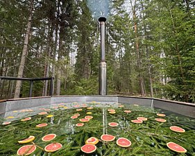 Парение в банном чане — уникальное сочетание отдыха, расслабления и оздоровления. Находится на открытом воздухе и подогревается изнутри. Париться в нем можно в любое время года. Процедура поможет отбросить негативные мысли, получить незабываемое удовольствие.