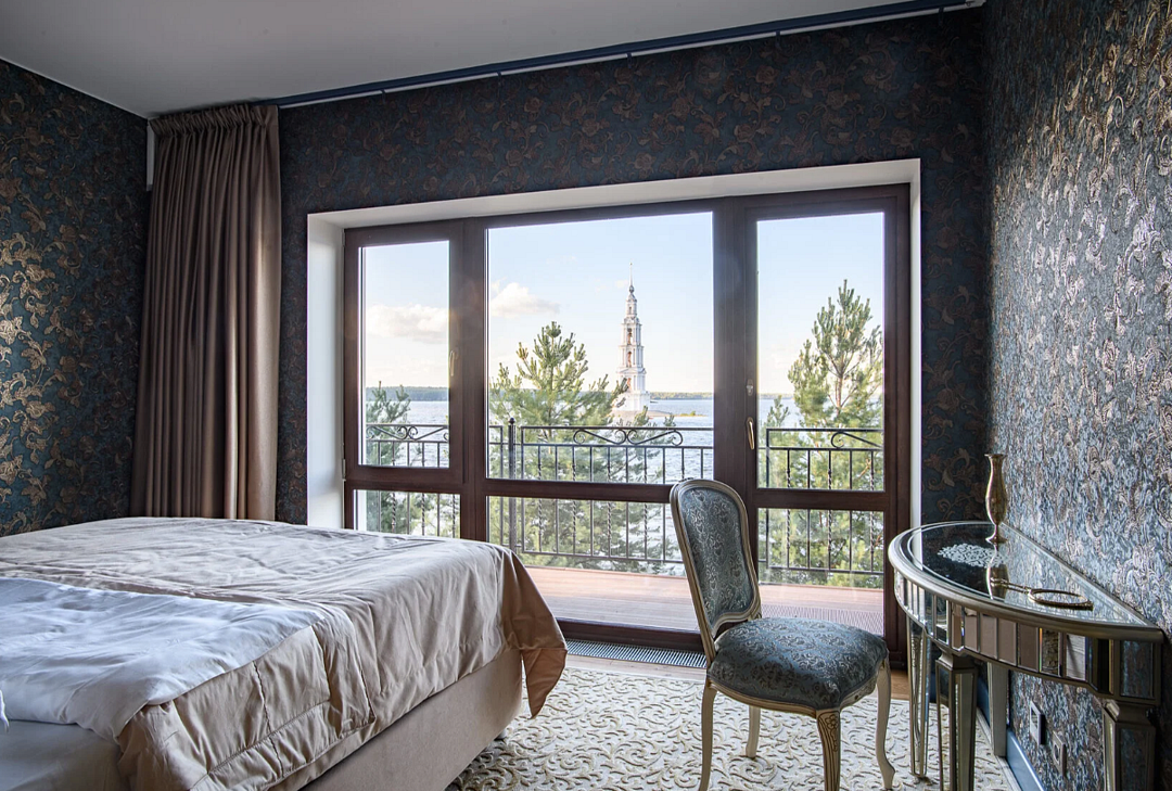 Номера категории "Mansard", с видом на Волгу и Никольскую колокольню. С небольшим балконом и кроватью размера Queen-size/Услуги и удобства