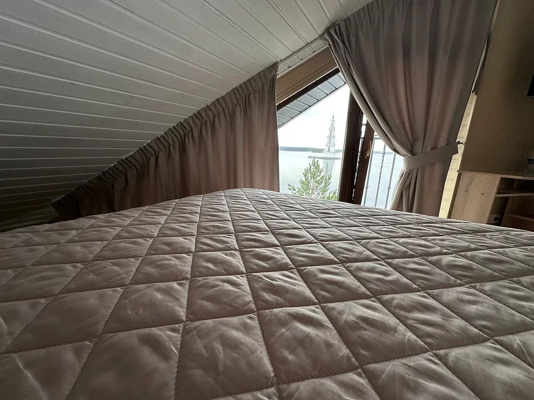 Мансардный номер площадью 14 кв.м с собственной ванной комнатой с душевой кабиной. В номера два окна, оба с с видом на знаменитую затопленную колокольню. Кровать Queen size номере. звуконепроницаемые окна, телевизор, рабочий стол, кондиционер, полотенца, махровые халаты, гигиенические принадлежности, тапочки, белоснежное постельное белье для наиболее комфортного сна. Номер расположен на третьем этаже.Услуги и удобства