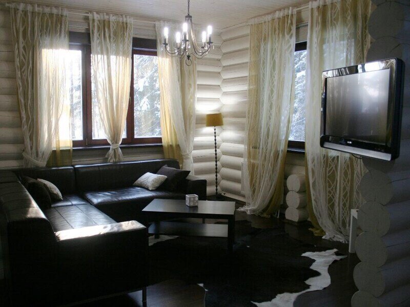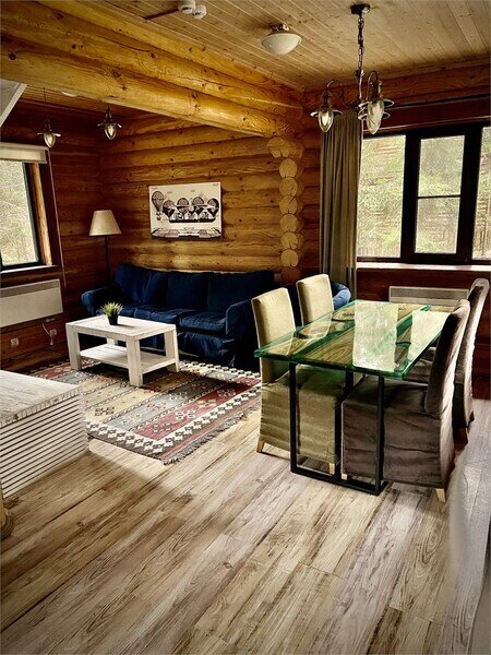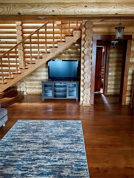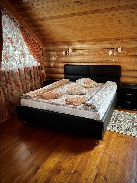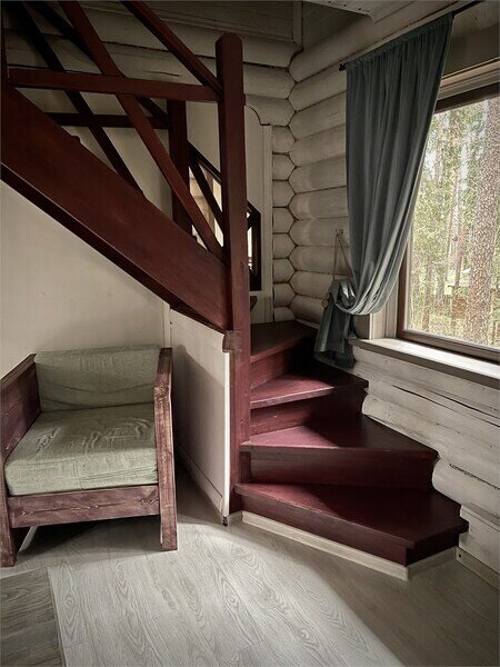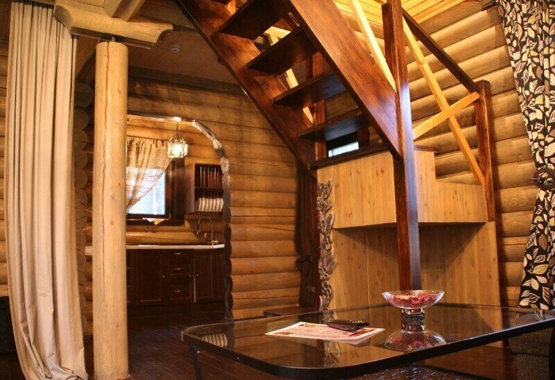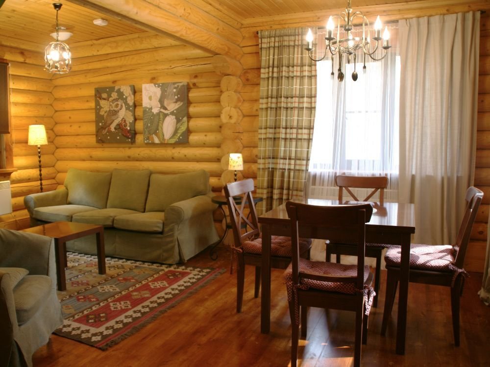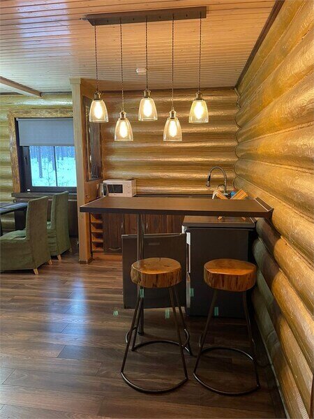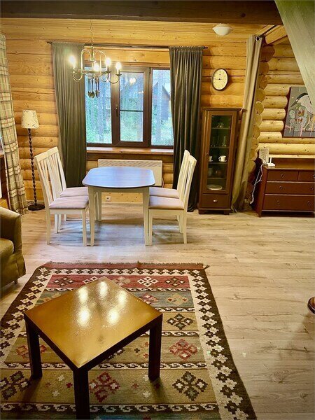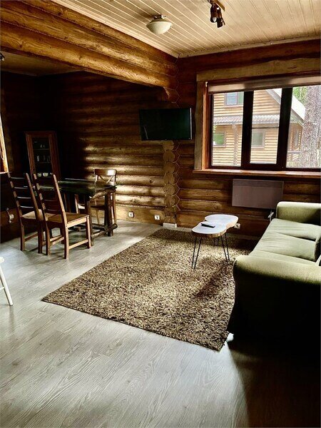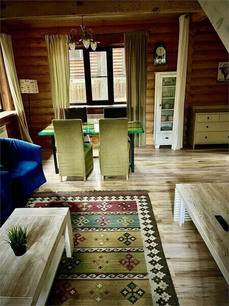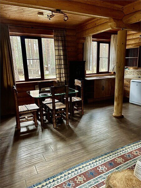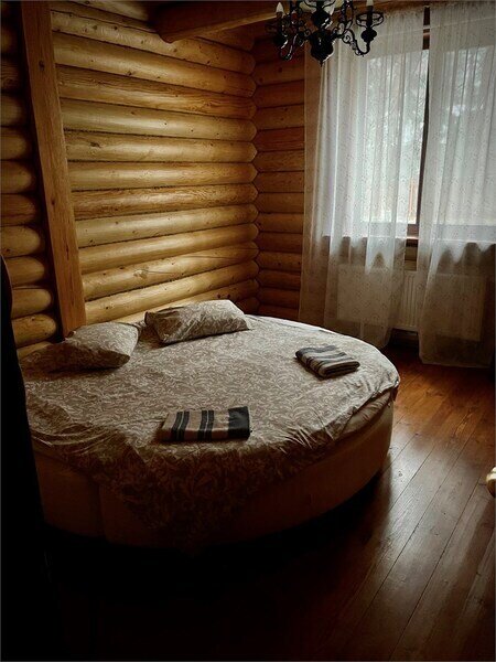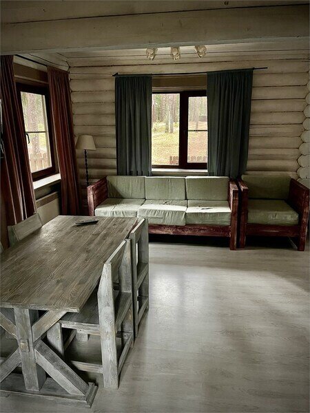 Просторный двухэтажный бревенчатый коттедж находится на удаленном расстоянии от остальных домов. Предназначен для комфортного проживания семи человек.