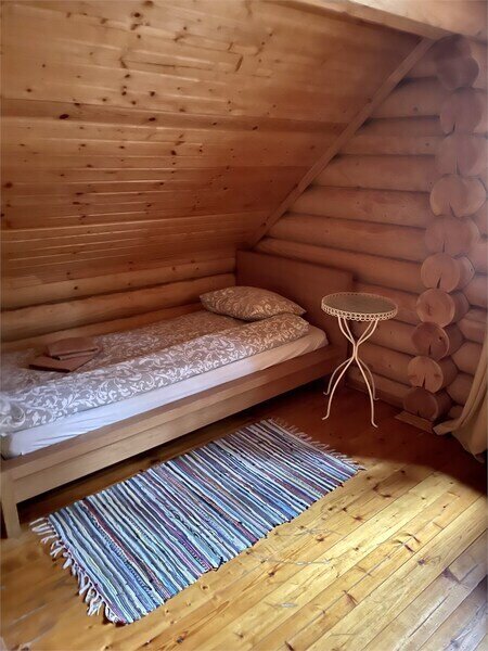 Просторный двухэтажный бревенчатый коттедж находится на удаленном расстоянии от остальных домов. Предназначен для комфортного проживания четырех человек.