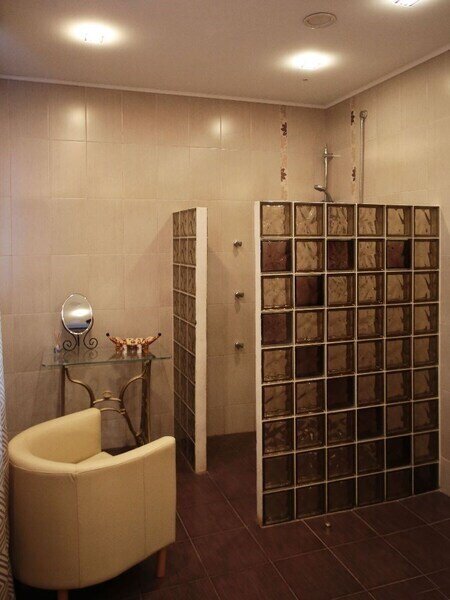 Особенность дома спальня со своим душем. (отделка спальни кафель).
