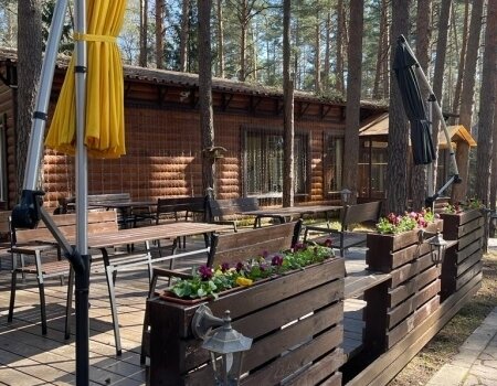 Шикарное расположение в сосновом лесу. Воздух божественный. В жару было очень комфортно, даже не ощущались 30 градусов. Думаю, в любую погоду там прекрасно.