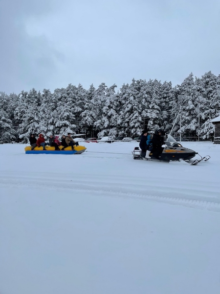 Катание на банане за снегоходом