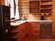 На первом этаже находится прихожая, туалет, уютная гостиная, столовая и кухня, оборудованная всем необходимым: холодильник, плита, чайник, полный набор посуды, кабинет с раскладным диваном и одна спальня с двуспальной кроватью.