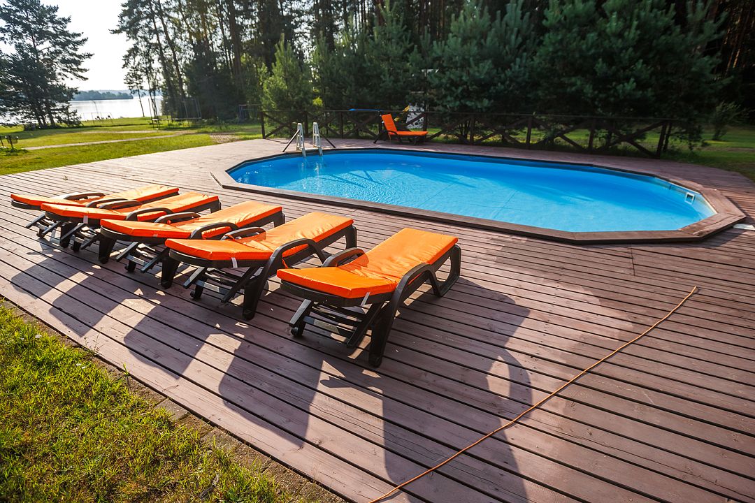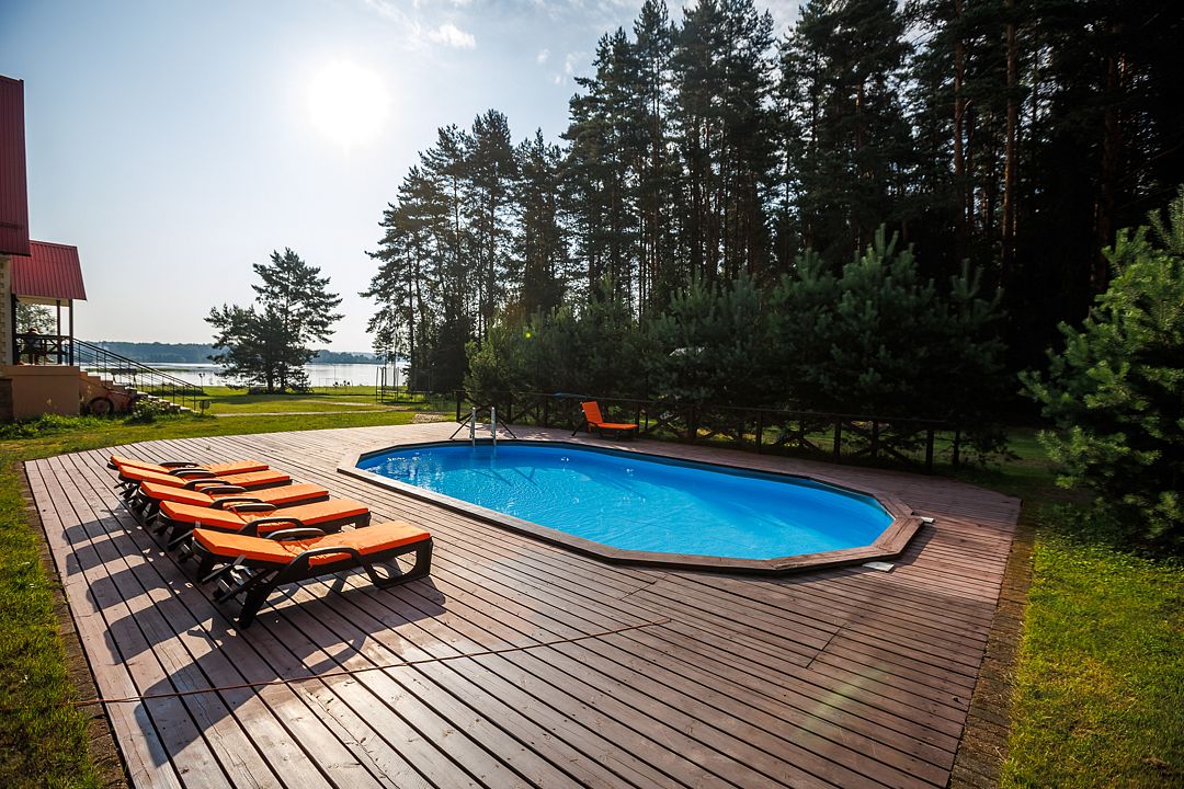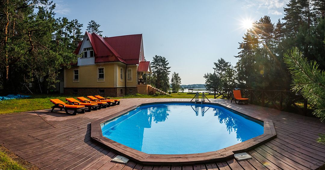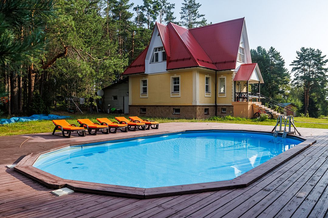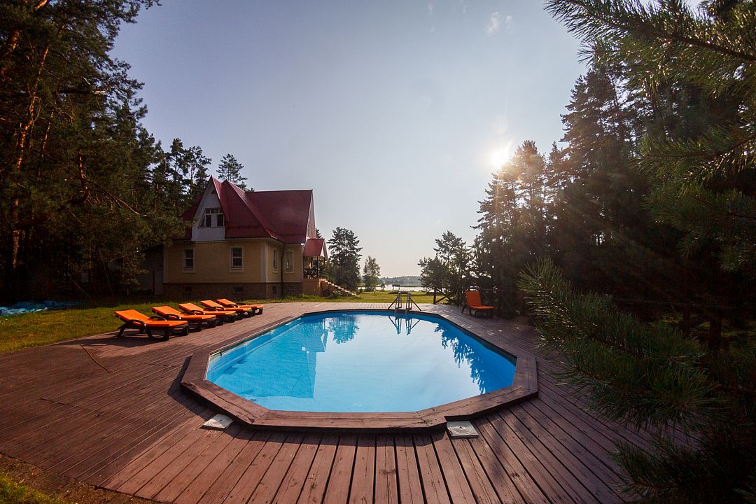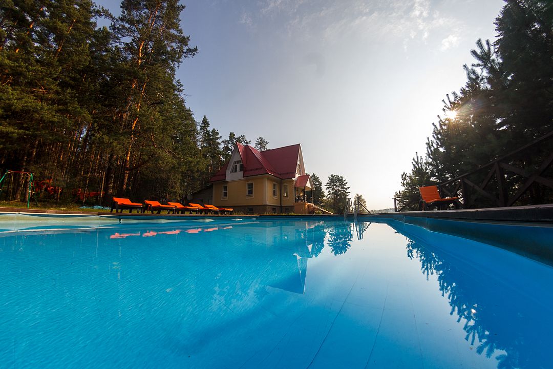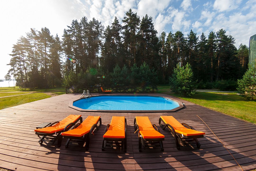 На территории парк-отеля функционирует сезонный плавательный бассейн с обустроенной зоной для загара и отдыха.