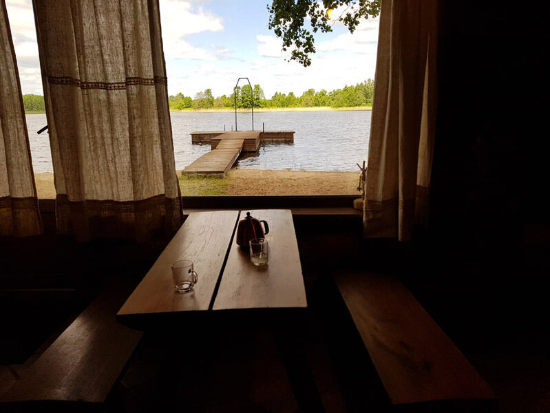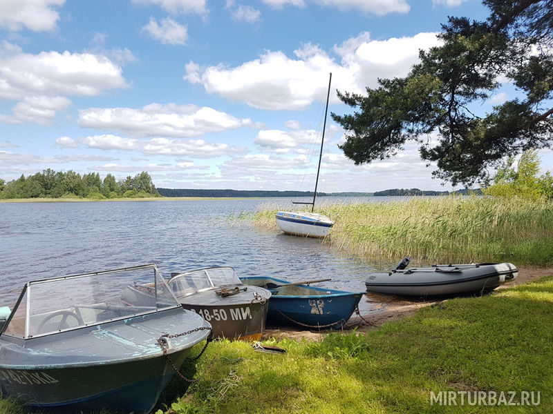 - рядом озеро с песчаным берегом;