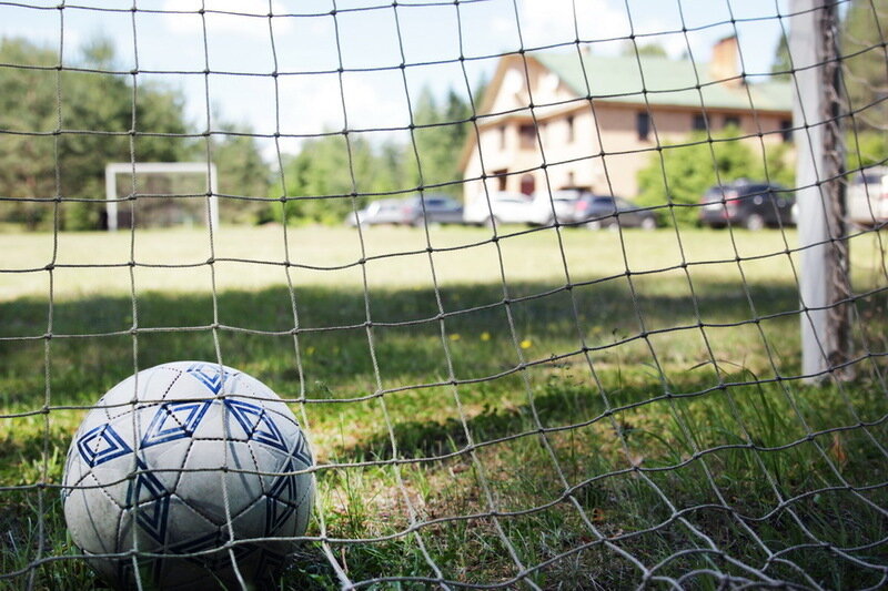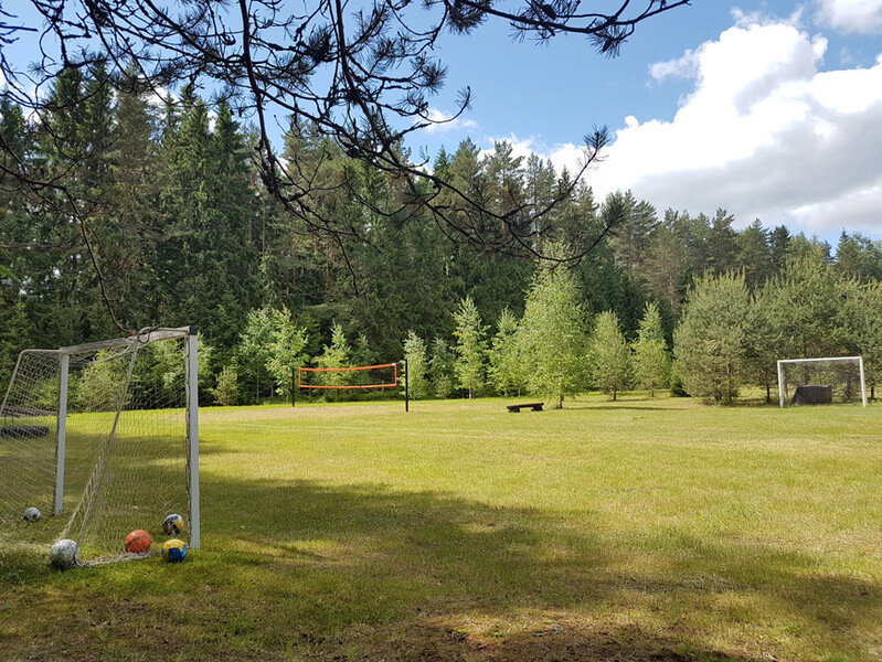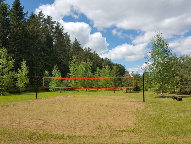 Волейбольная площадка и поле для мини-футбола.