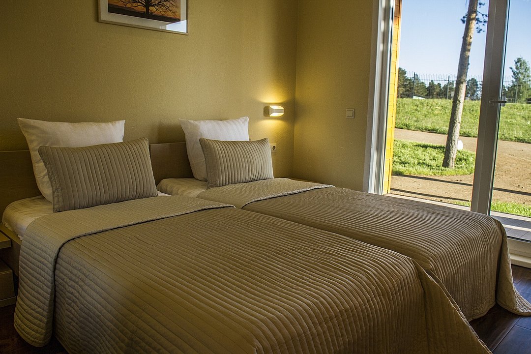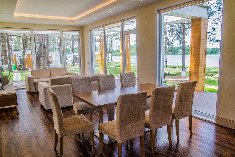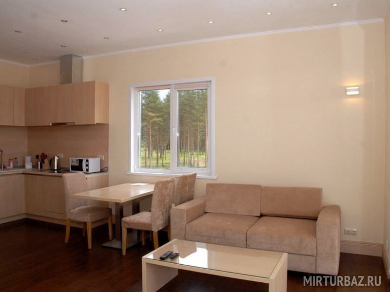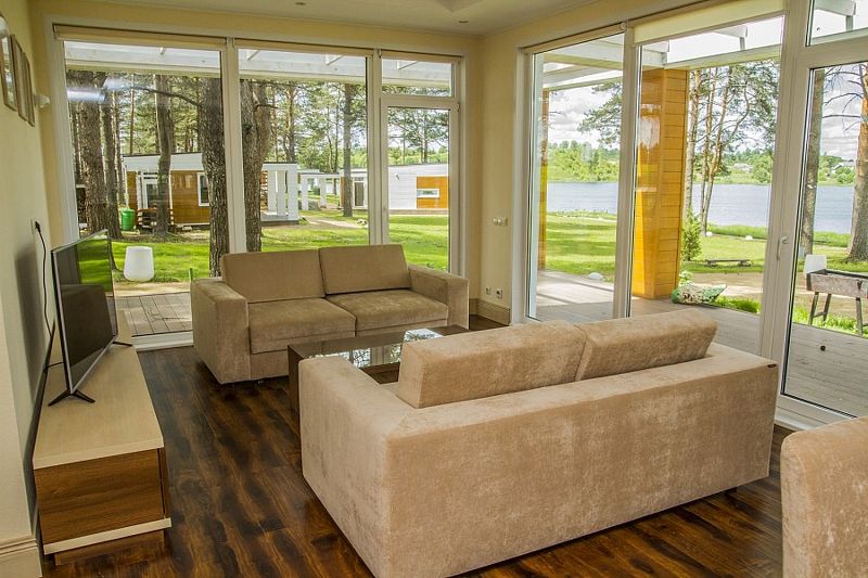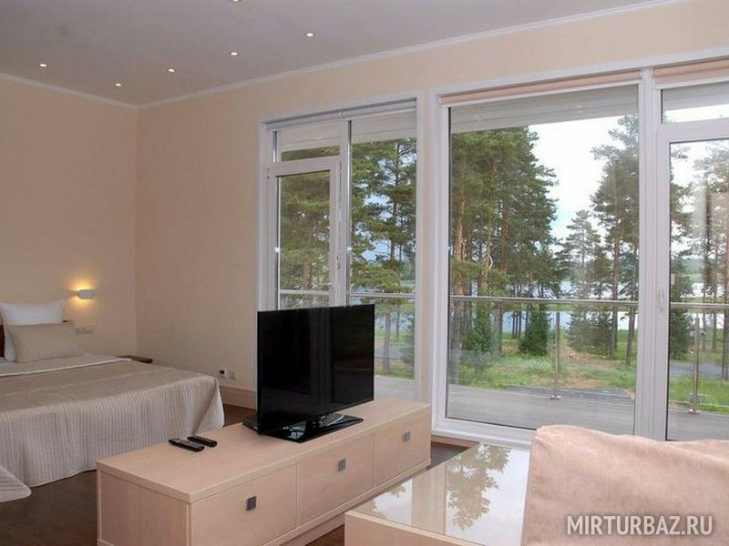 Комплекс находится в самом сердце хвойного леса, окруженного с одной стороны рекой, а с другой — озером, что делает его поистине уникальным местом для отдыха. Виллы, оснащенные всем необходимым, отличаются уютным и гармоничным интерьером, а панорамные окна открывают захватывающий вид на окружающую природу.