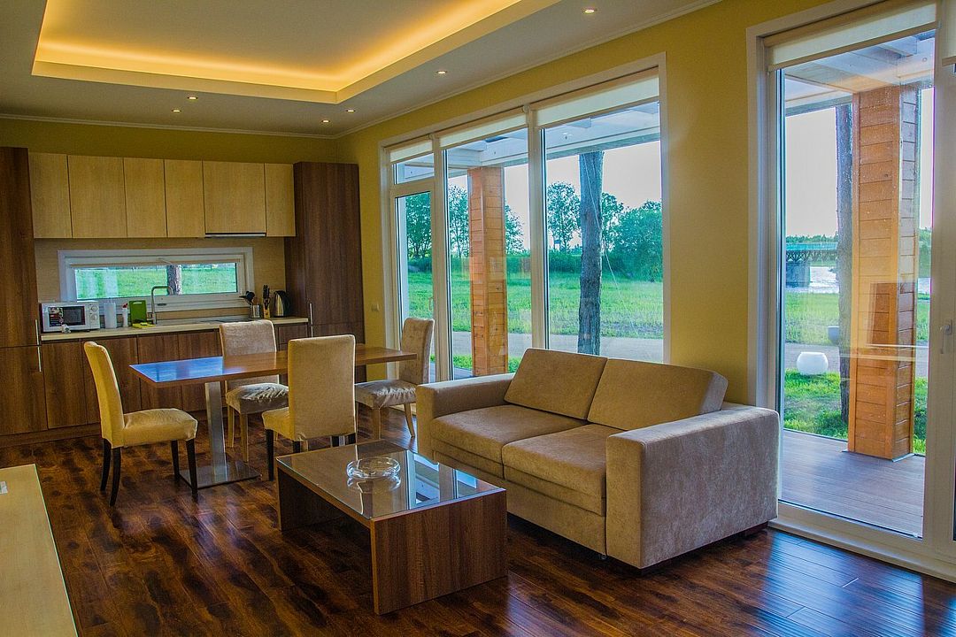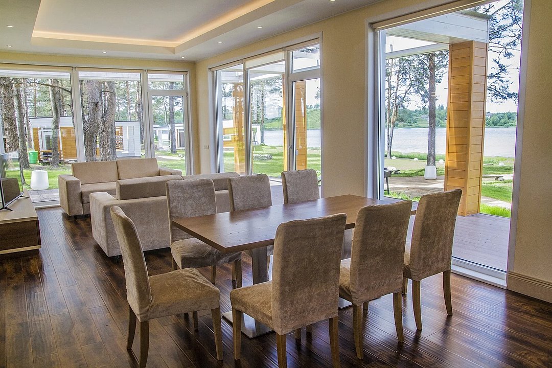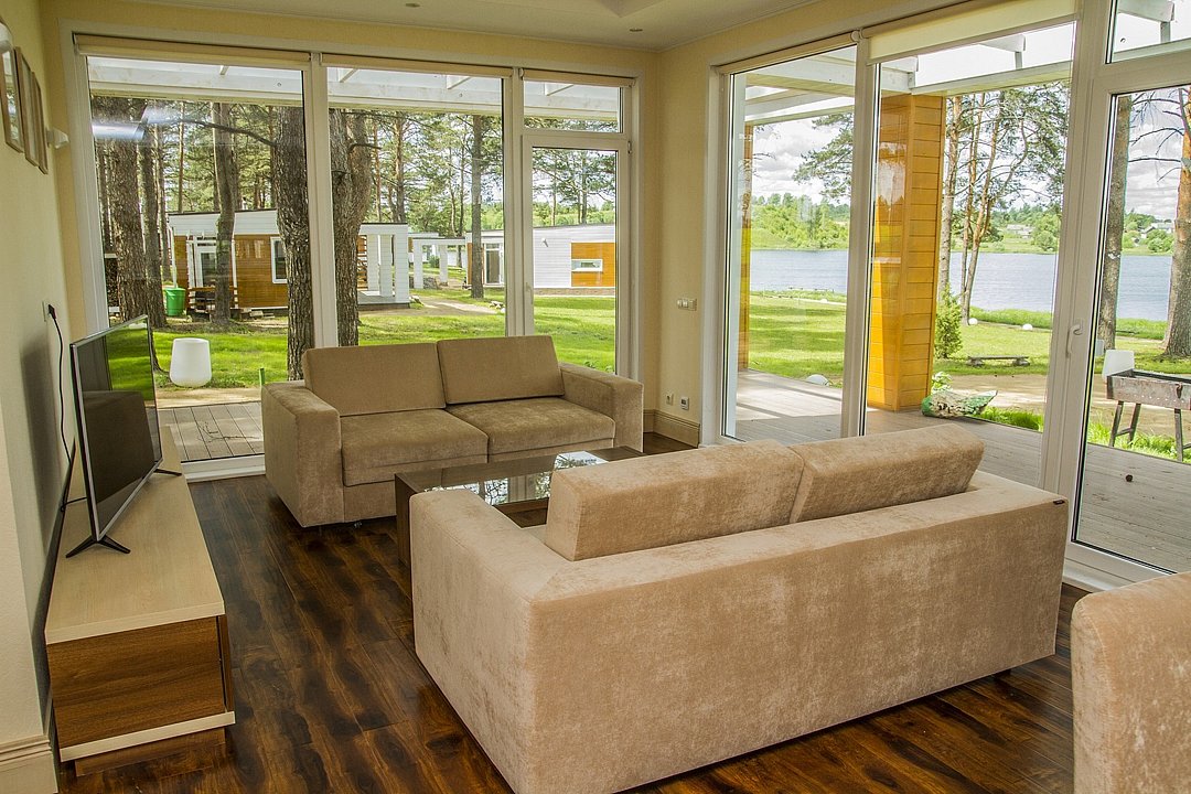 Комфортабельная мини-вилла с панорамными окнами и видом на озеро Волго. Вилла полностью готова к проживанию.