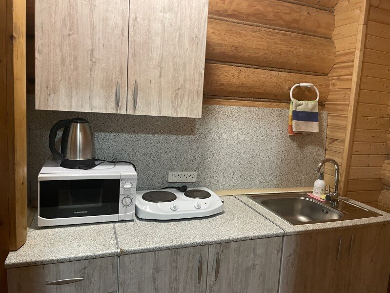 В доме вас ждут: две изолированные спальни с видом на озеро и лес; оборудованная кухня для самостоятельного приготовления пищи; ванная комната с душевой кабиной; москитные сетки на окнах. Кухня: питание не включено в стоимость проживания. Электроплитка, СВЧ, чайник, холодильник; набор посуды, кухонная утварь. Ванная комната: душевая. Фен по запросу.