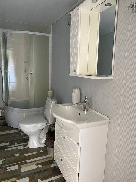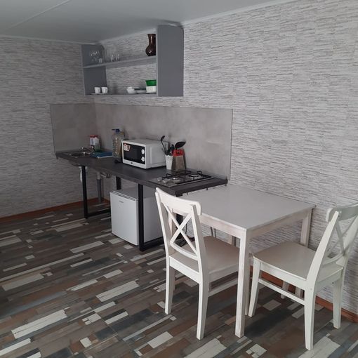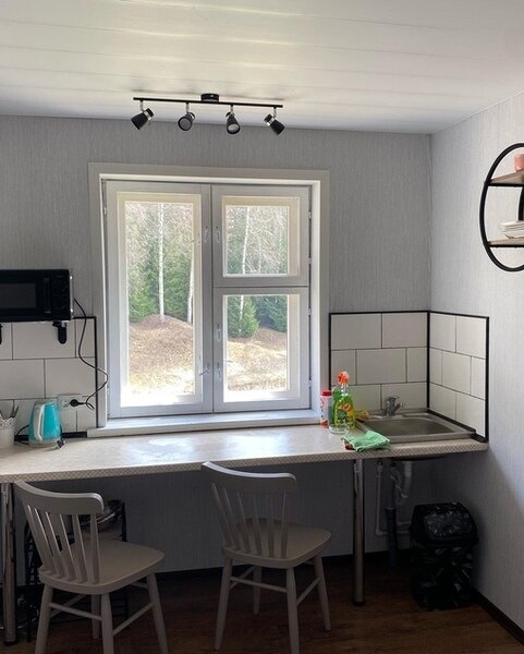 Дом двухместный Студия, возможно доп. место и проживание с питомцем , в доме имеется кухонная стойка и необходимая посуда, двуспальная кровать или две односпальные, с/у с душевой, небольшая веранда.
