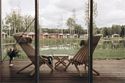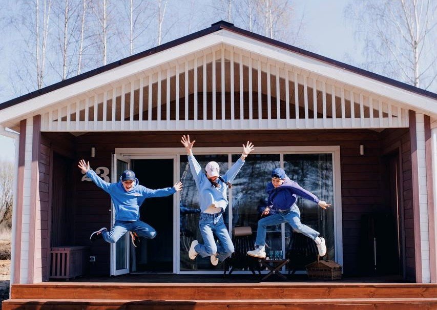 Просторная терраса с видом на озеро и панорамные окна позволяют ощутить все прелести отдыха на природе. Здесь можно одновременно насладиться отдыхом и посвятить себя важным делам, ведь в каждом доме нового глэмпинга организованы рабочие места с достаточным количеством розеток для зарядки гаджетов каждого члена семьи.