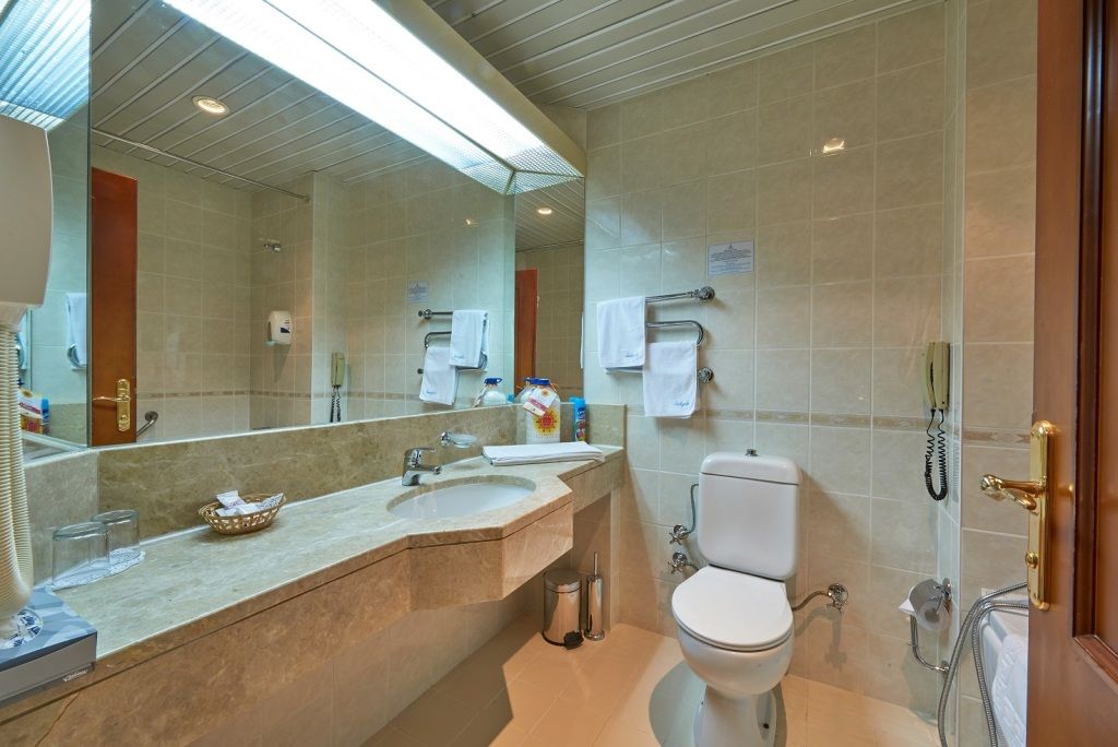 Номера старенькие , но для нас это не проблема, в номере находились мало, на обеденный сон ребенка и ночью, когда ложились спать. В номере всегда было чисто, полотенца меняли каждый день, уборка ежедневная, есть одноразовые шампуни, мыло, бальзам , лосьон для тела. Также диспенсер с мылом или гелем для душа в ванной.