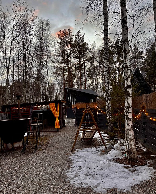 Также предоставляются услуги русской бани, банного чана, детская площадка, доставка еды, мангальная зона.