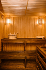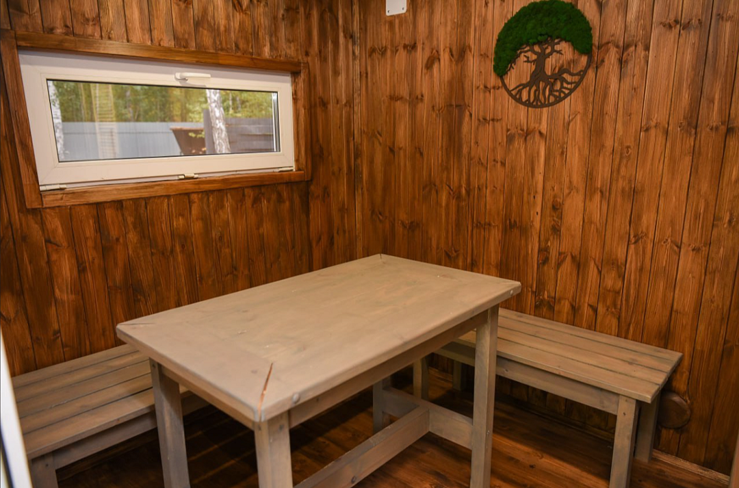 Инфраструктура: тапочки, полотенца, шапочки, березовые веникиБаня — это не только оздоровление, но и отдых для души. В настоящей бане, где слышен треск горящих дров и ощущается ароматный травяной запах пара, можно подумать о важном и насладиться философией жизни.