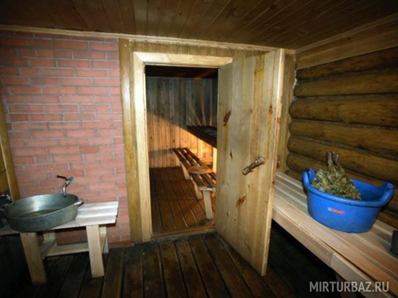 Уютные русские бани на дровах с большими комнатами отдыха. Любители свежих ощущений могут прямо из парилки пробежать до озера по удобному деревянному спуску и нырнуть в ледяную прорубь. 2 веника, 10 простыней, до 10 человек.