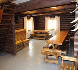 Банкетный дом, теплый зимой и прохладный летом. Всегда уютный. Здесь свободно может расположится компания из 40 человек. Если вас много и вы отмечаете юбилей или корпоративный праздник, то банкетный дом – как раз то, что нужно! Благоустроенный, двухэтажный дом. На первом этаже банкетный зал, кухня. На втором этаже спальные комнаты, где с комфортом расположатся 16 человек.