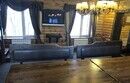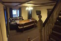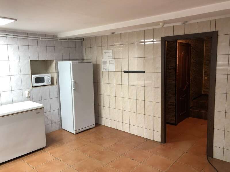 Для больших (до 50 человек) компаний имеется трехэтажный коттедж! Он располагает прекрасным банкетным залом с камином, также здесь есть большая Русская баня (топится сухими березовыми дровами!), бильярдная, спальные комнаты. Как удобно будет провести здесь к примеру свадьбу, особенно если к вам на праздник приехали гости из других городов. Подумайте: регистрация брака, банкет и первая брачная ночь – все в одном месте! И о размещении гостей беспокоиться не придется. Что касается банкета, это тоже не проблема. Желаете, чтобы повар и продукты были Ваши? Пожалуйста! Не хотите лишних хлопот? Переложите их на плечи персонала, для Вас организуют и роскошный стол, и великолепное обслуживание! Сопроводят Ваш банкет и музыкой, и танцами, и конкурсами! В доме есть все необходимое для полноценного отдыха на природе: на цокольном этаже оборудована кухня, бильярдная комната, баня, сан. узел, душ, на 2-м этаже банкетный зал, спальные комнаты (общее количество спальных мест в доме рассчитано на 26 человек), холодильник, микроволновая печь, чайник, плазменная панель, DVD-караоке аппаратура.