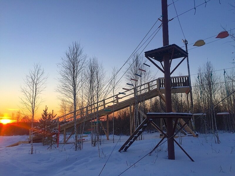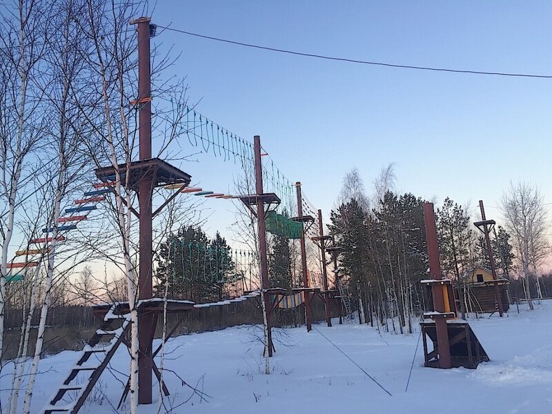 Веревочный парк в Тюмени считается одним из лучших, ведь он расположен в настоящем сосновом бору на лоне природы, в удивительно красивом месте, которое находится кстати не так далеко — всего в 7 километрах от города.