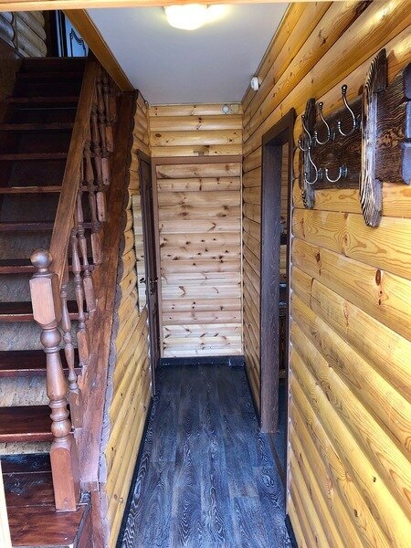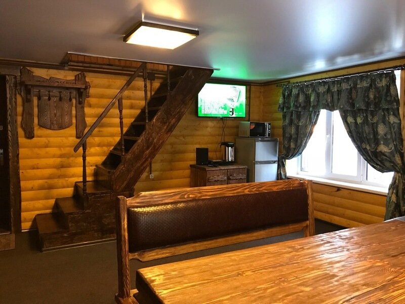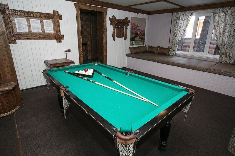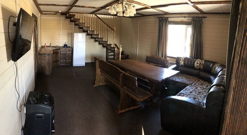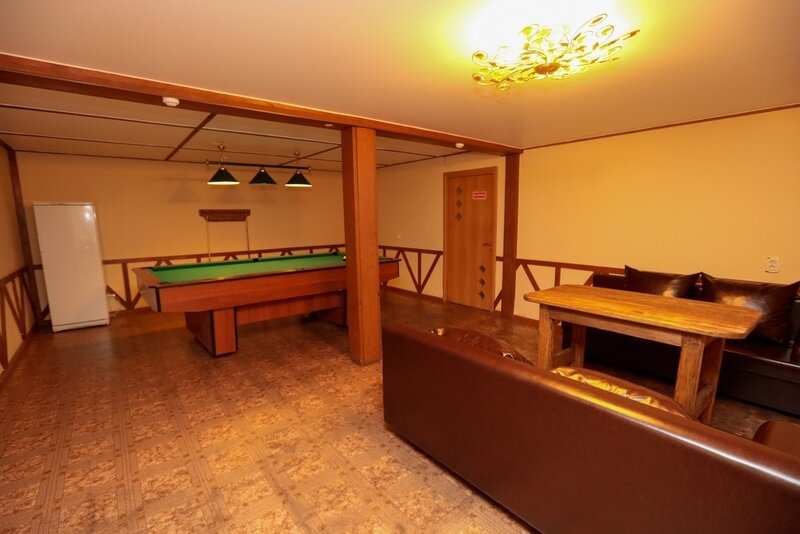 На 1-м этаже уютная гостиная на 8 посадочных мест, сан. узел, душ, на 2-м этаже спальня и бильярдная комната (общее количество спальных мест на 8 человек), холодильник, чайник, телевизор, DVD-караоке аппаратура