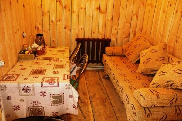 Двухэтажный дом для 8-10 человек. Сдается исключительно полностью. На первом этаже расположены: мини-музей, русская печь, телевизор, спутниковое TV, кухонная зона, большой угловой диван и туалет. На втором этаже 4 комнаты. Возможно размещение по 2 человека в комнате. Один номер с двухспальной кроватью, а три с полуторными. На этаже санузел, душ.