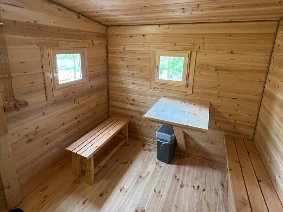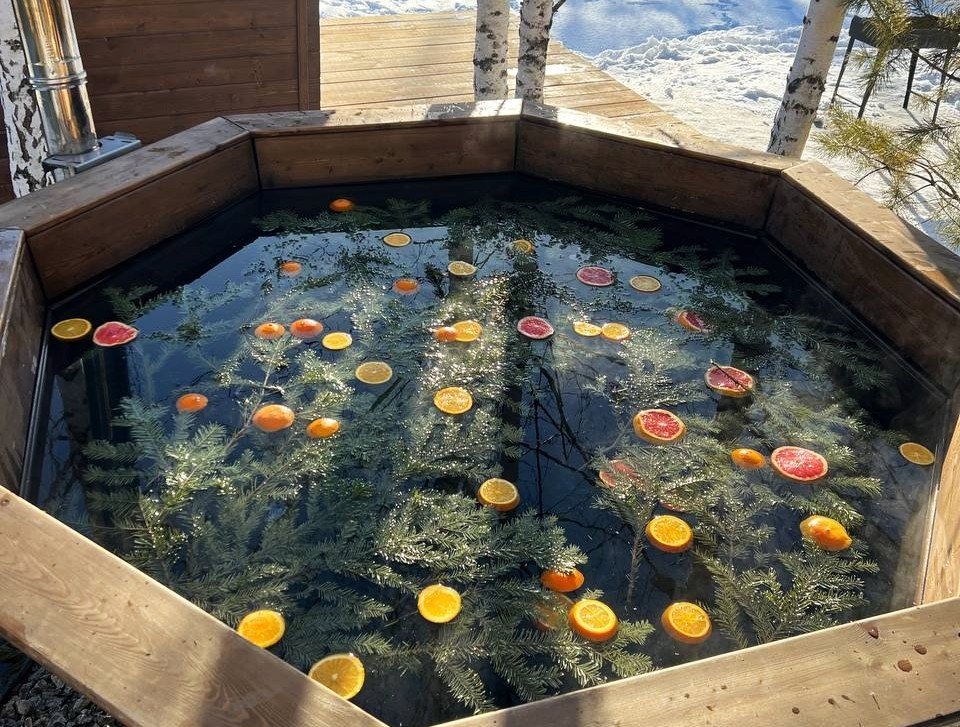Рядом с домом у террасы установлен банный чан и русская баня, где приятно расслабиться после активного рабочего дня. Также на территории расположена мангальная зоны для барбекю. Для приезжающих на личном авто имеется парковка.
