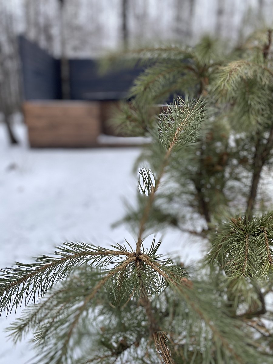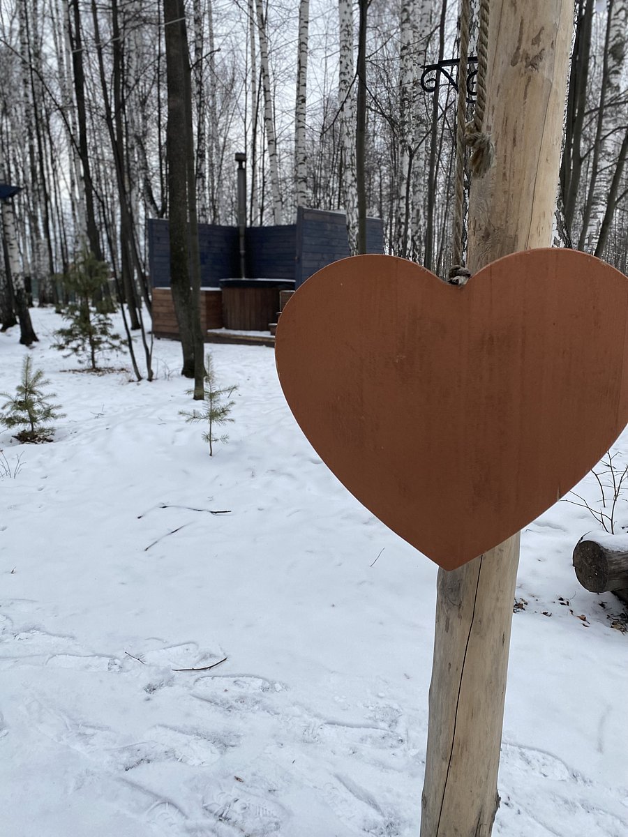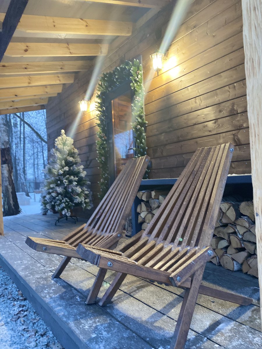 Домик-баня включает парную на дровах, комнату отдыха, санузел, душевую с ледяной «обливашкой», прихожую, открытую террасу с зоной отдыха и прохладную мини-купель.