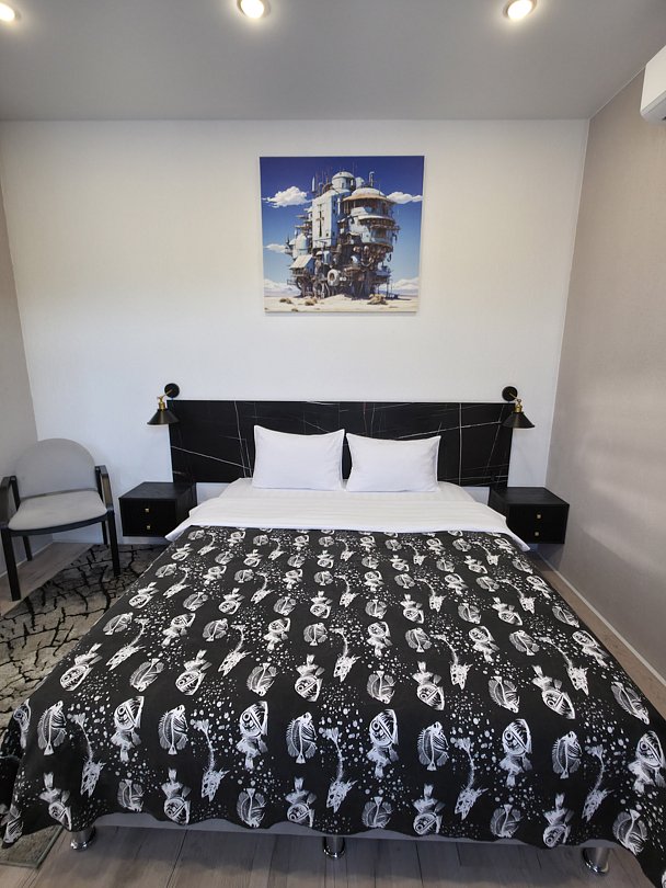 В каждом номере созданы комфортные условия: удобные кровати, кондиционер, холодильник, кабельное телевидение и чайник. Все номера оборудованы отдельным санузлом с душем, а также предоставляется доступ к бесплатному высокоскоростному Wi-Fi.