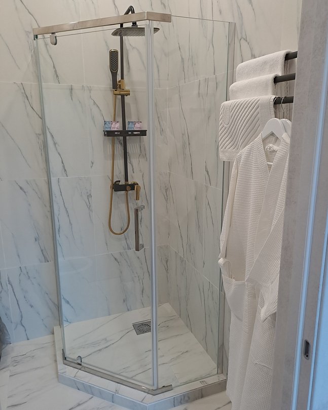 Кондиционер, мини-холодильник, телевизор с плоским экраном, рабочий стол со стулом, шкаф для одежды, чайник и набор посуды, капсульная кофемашина. Кабельное телевидение, интернет. В ванной комнате: фен, душевая кабина, туалет, бесплатные гигиенические принадлежности: мыло, шампунь, гель для душа, комплект полотенец и халат.