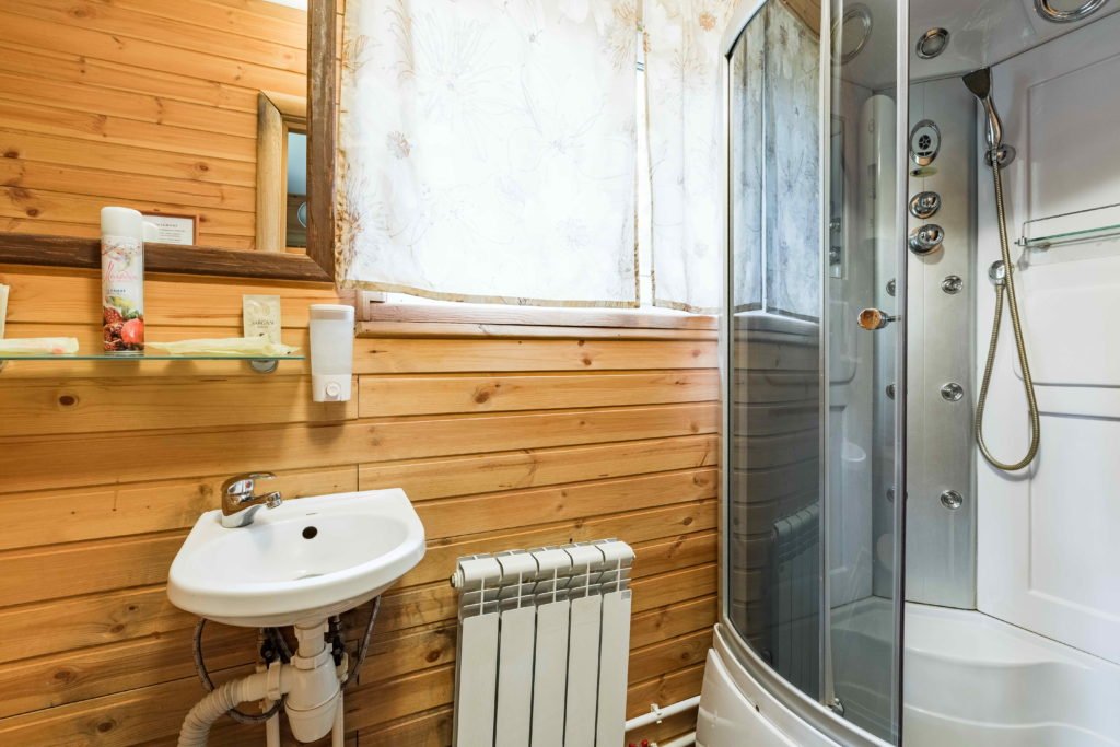 - санузел с душевой кабиной;- банные принадлежности на четыре персоны – комплект полотенец, тапочки, мини-косметичка;